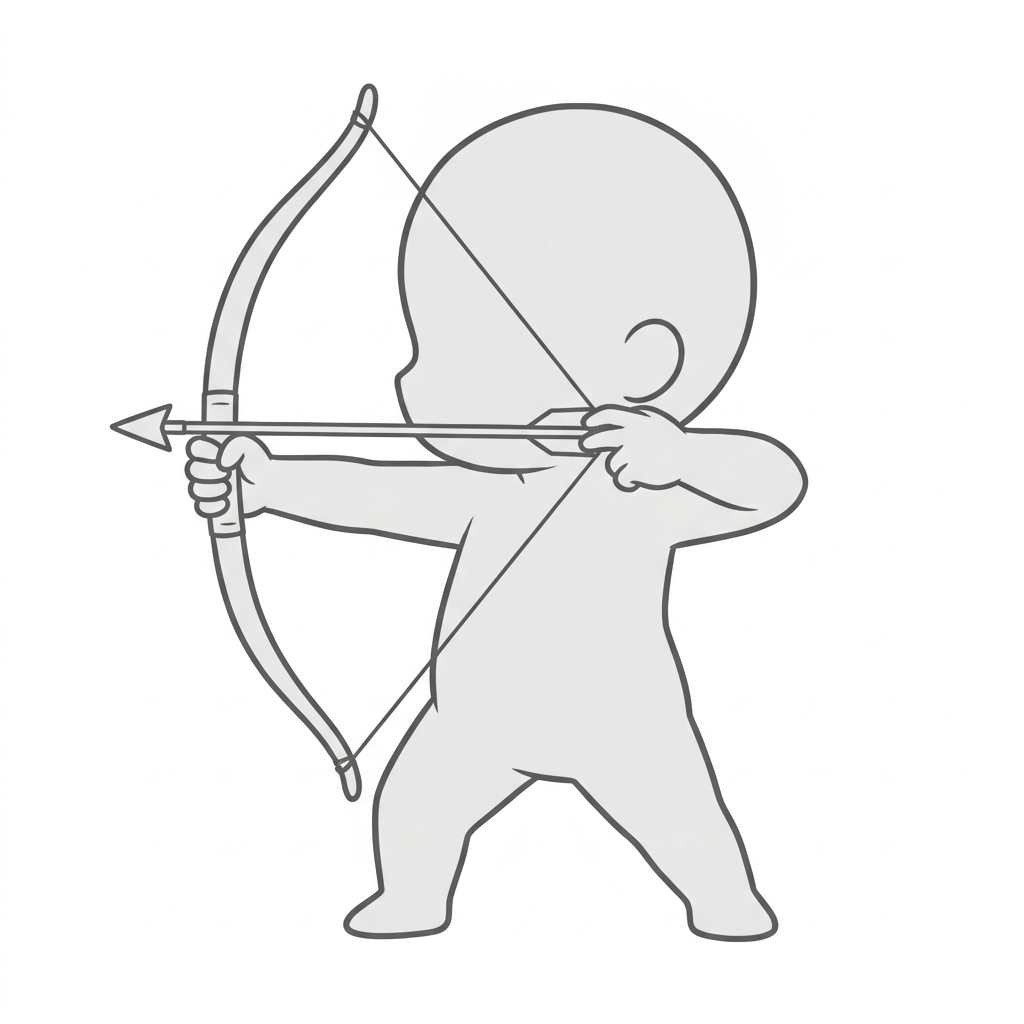 狙い撃ちシーンに最適な、弓構えの定番バトルポーズ素材です。
