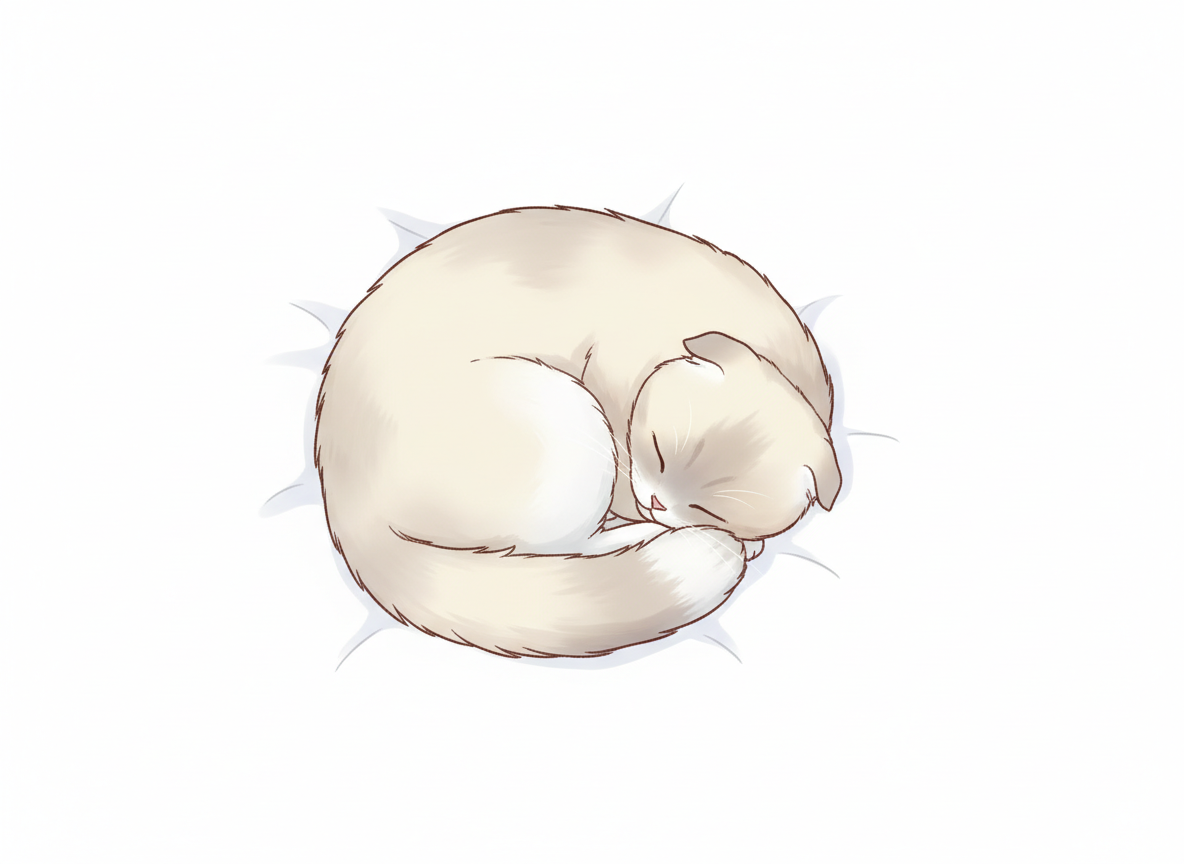 丸まって寝る猫のポーズ 癒し系イラストの定番構図