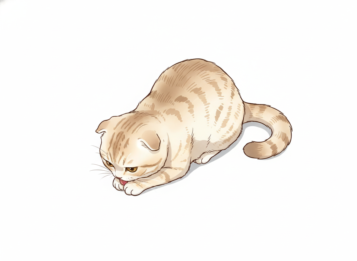 手をなめる猫のポーズ 自然な動作表現の作画資料