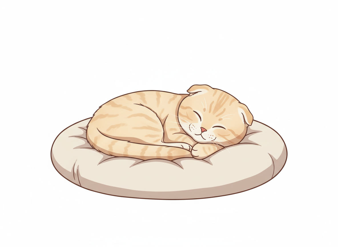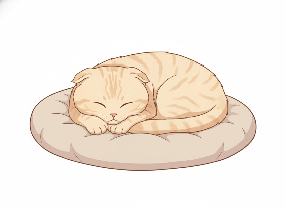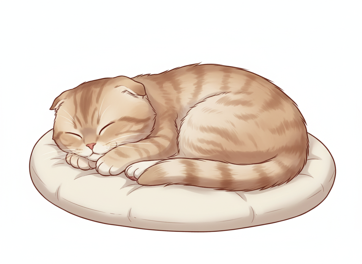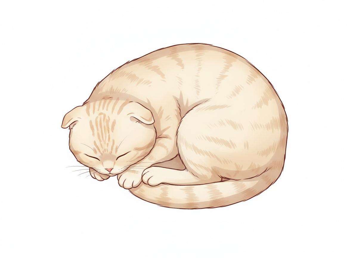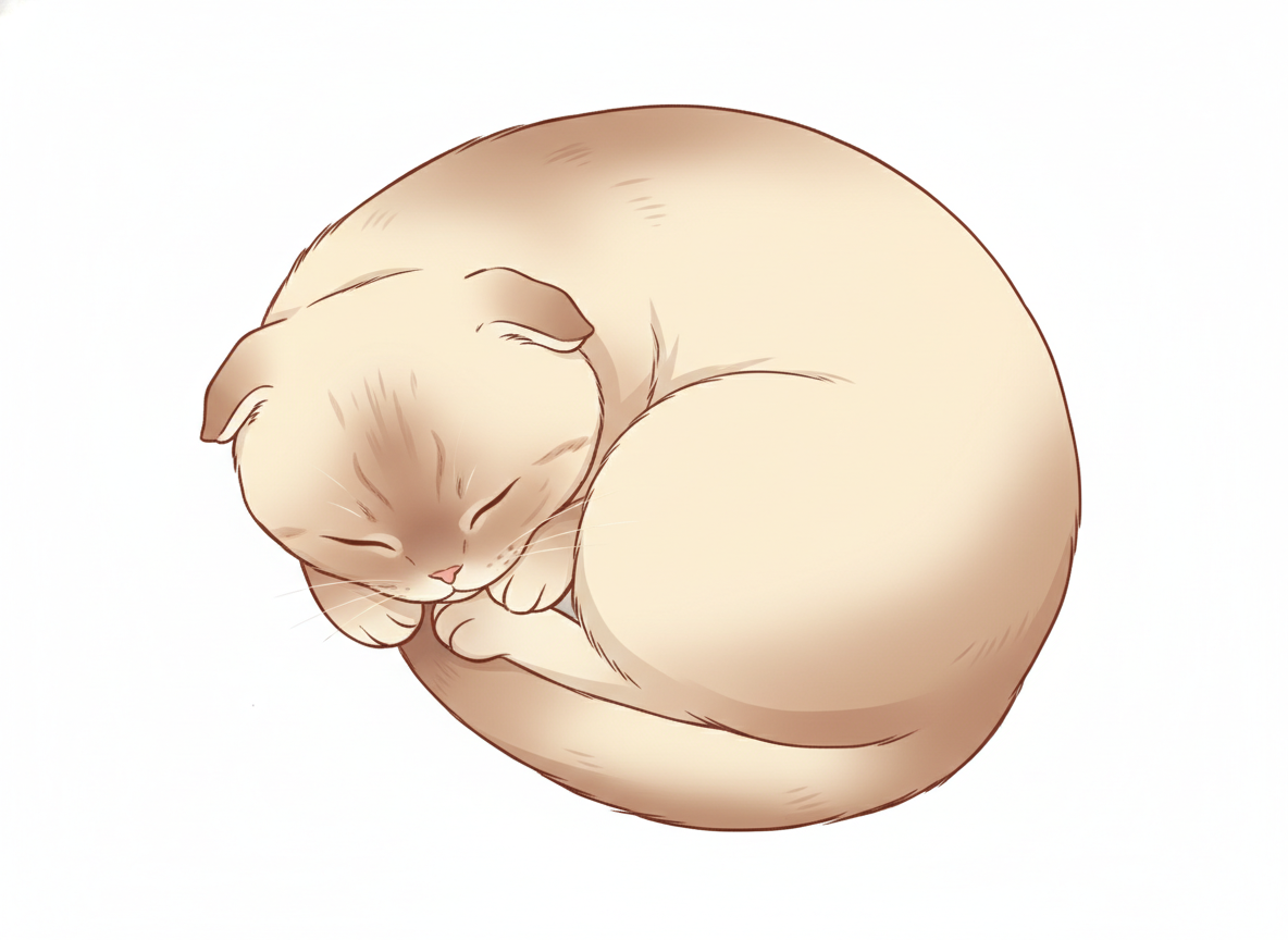 丸まって寝る猫のポーズ 癒し系イラストの定番構図