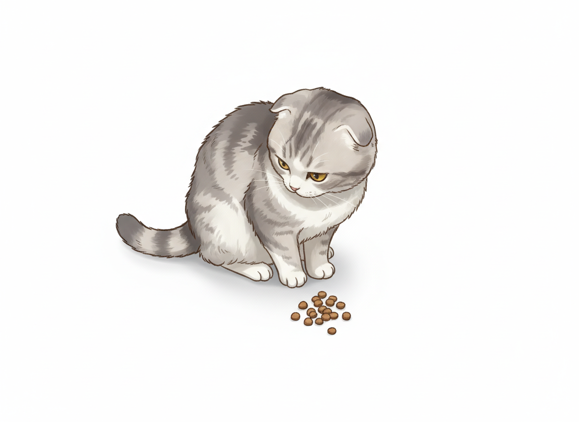 フードを食べるかわいい猫。生活感のある自然なポーズを描きたい人におすすめ。