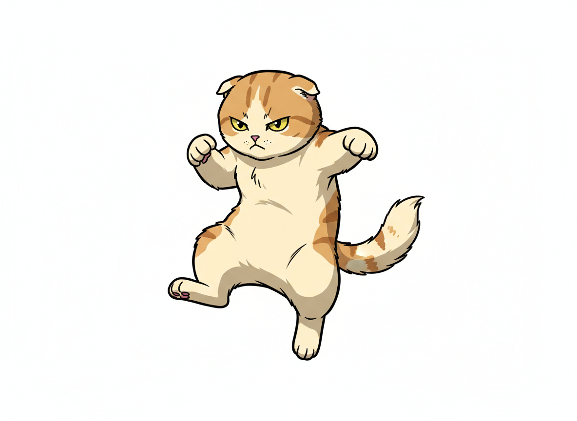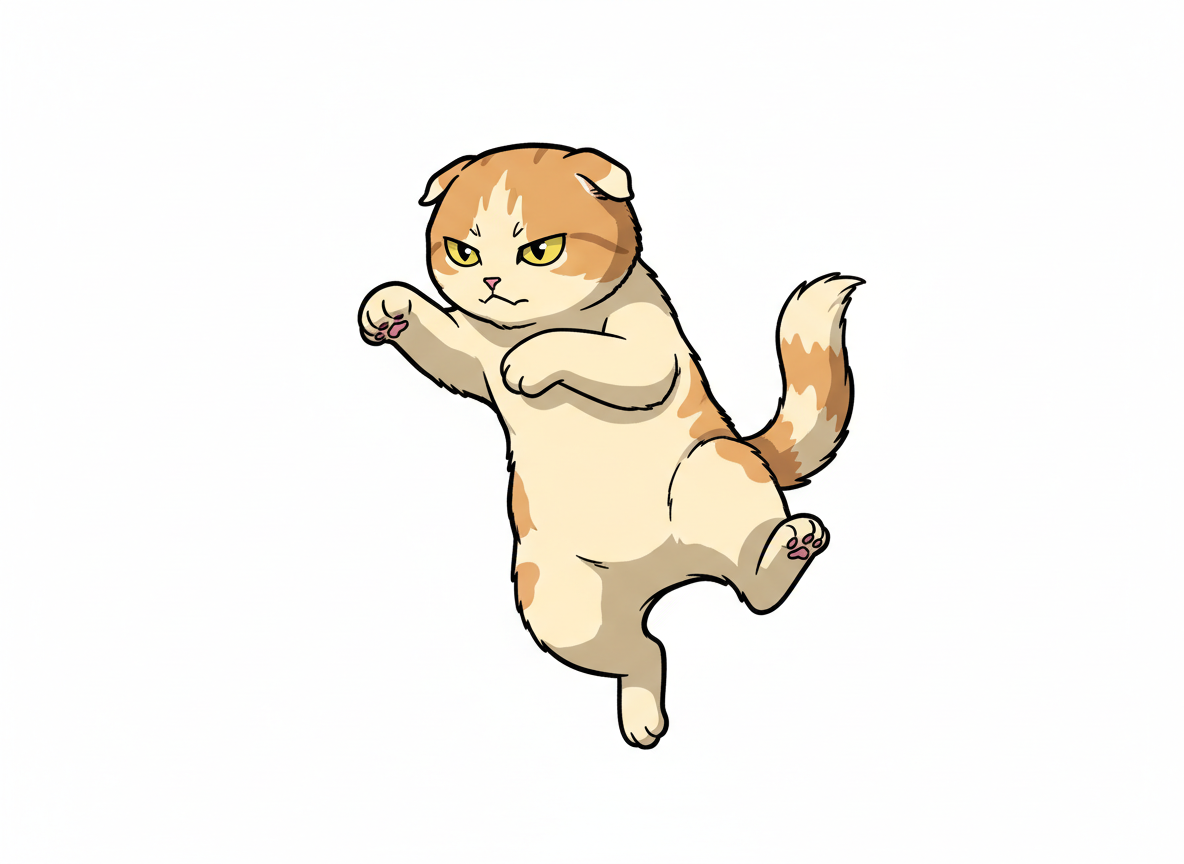 構えたポーズの猫。アニメや漫画のアクションシーン制作におすすめです。