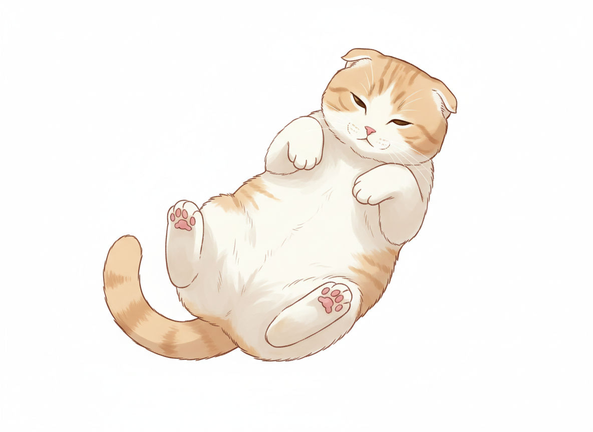 お腹を見せて寝転ぶ猫のポーズ リラックスした仕草の描き方