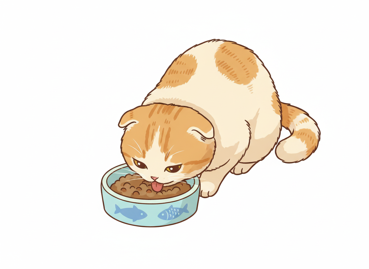 ごはんを食べる猫のイラスト 日常シーンの作画参考