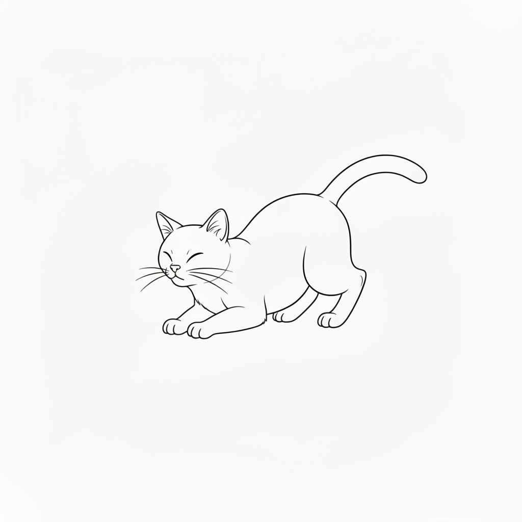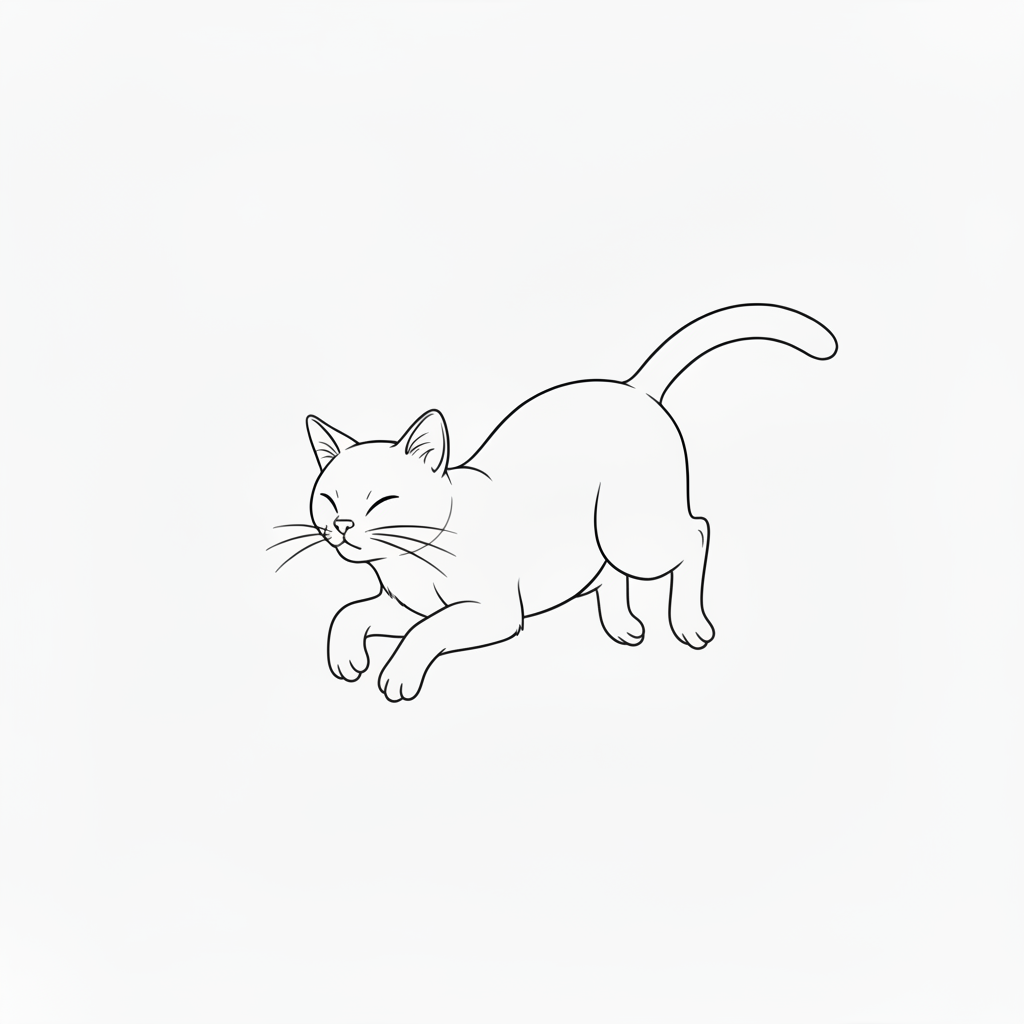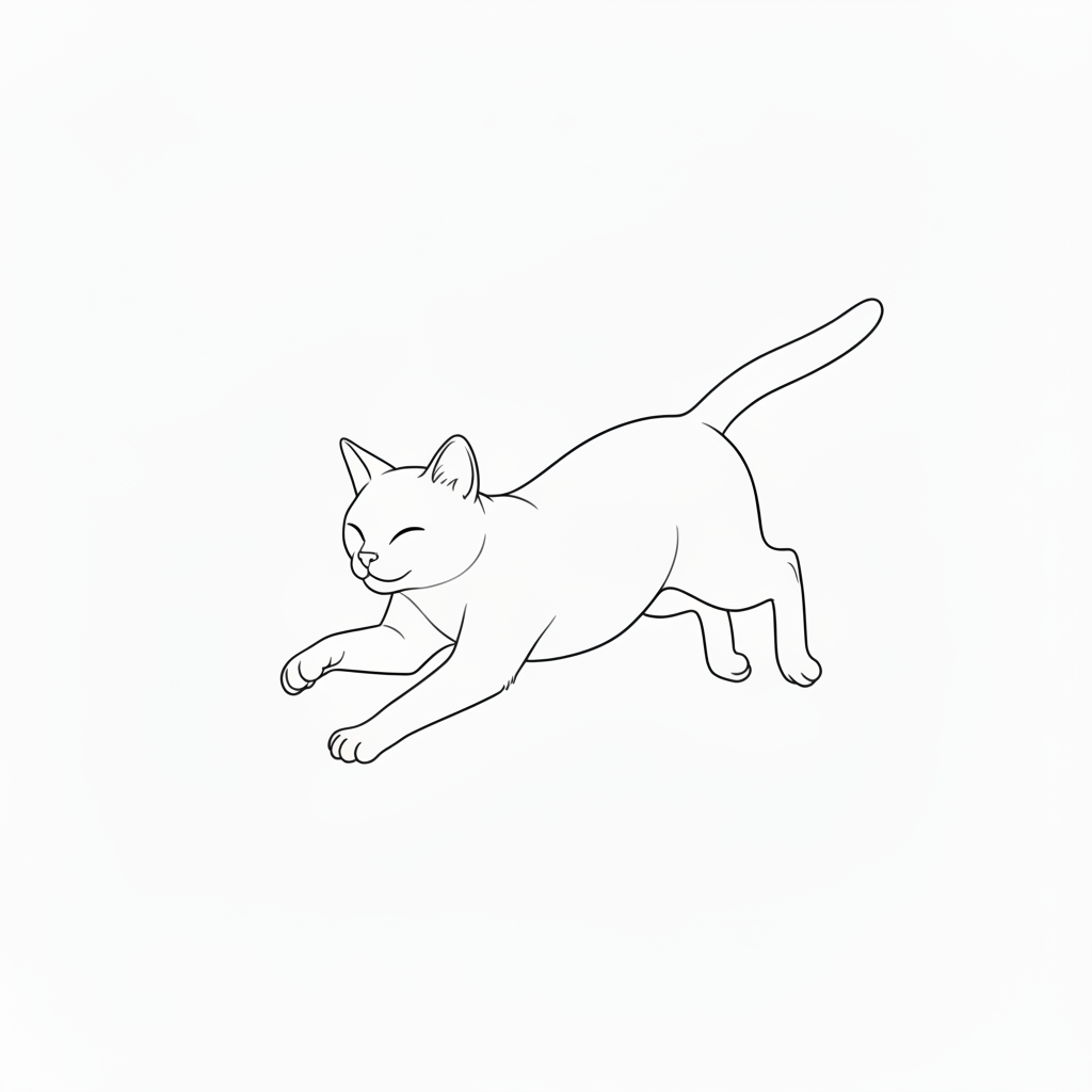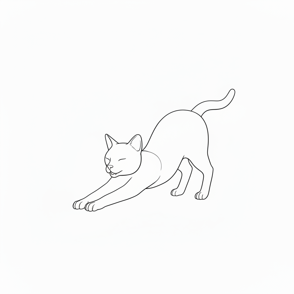 気持ちよく体を伸ばす瞬間をシンプルなラインで描いた、猫イラストに使いやすいポーズ素材です。