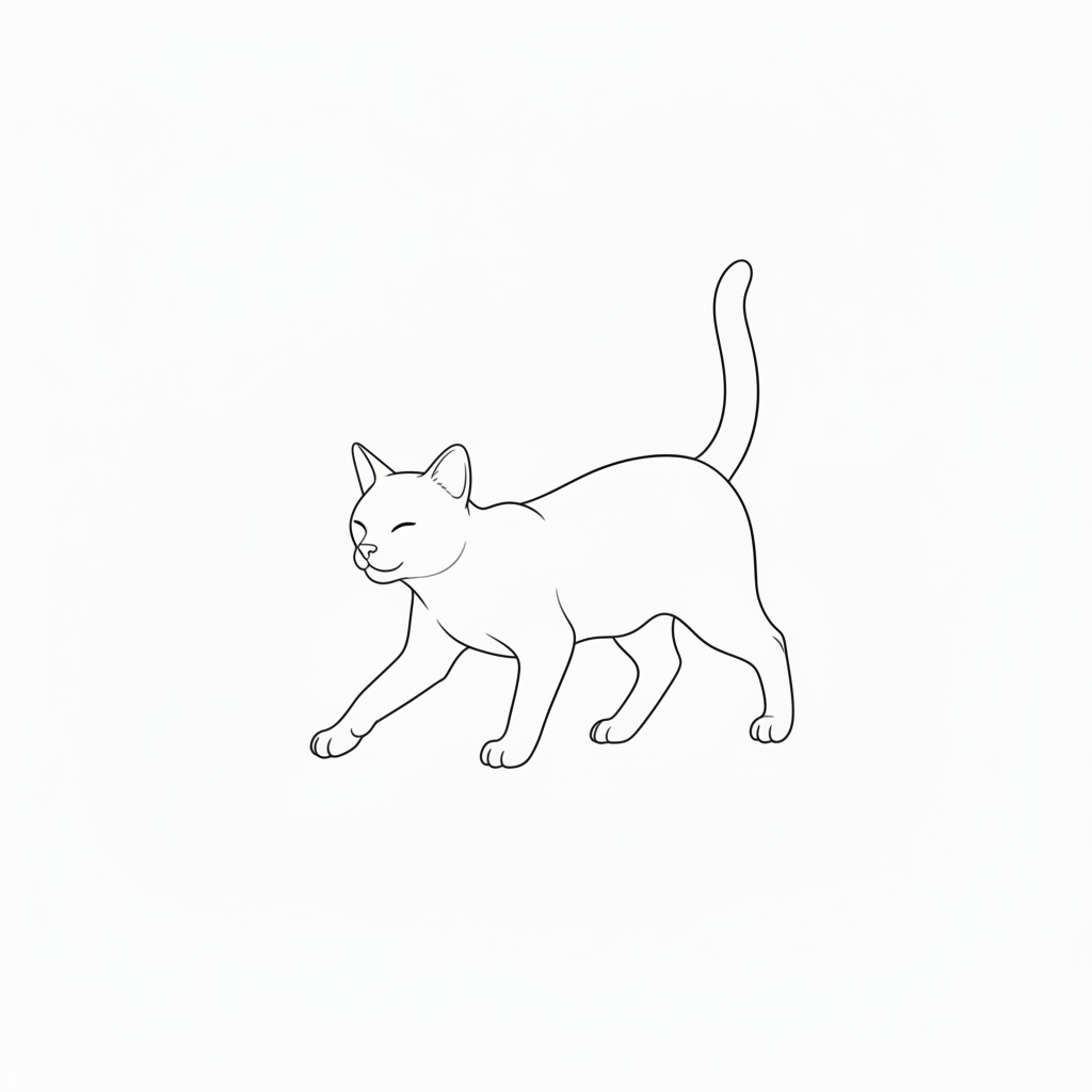猫の歩行ポーズ線画|しっぽを立てたごきげん歩き