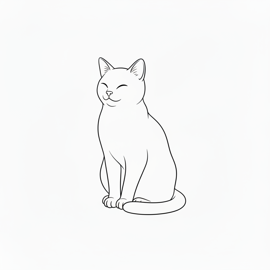猫のおすわりポーズ線画|正面〜やや斜めの座り