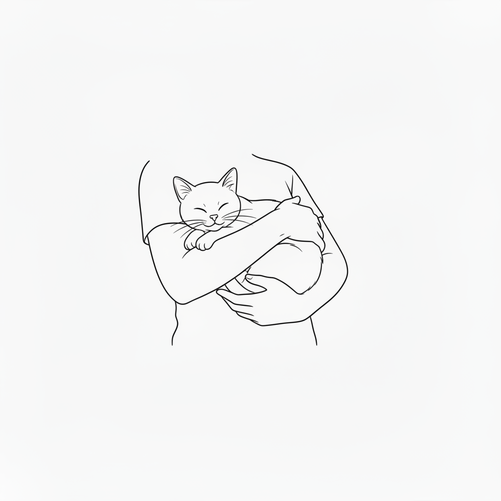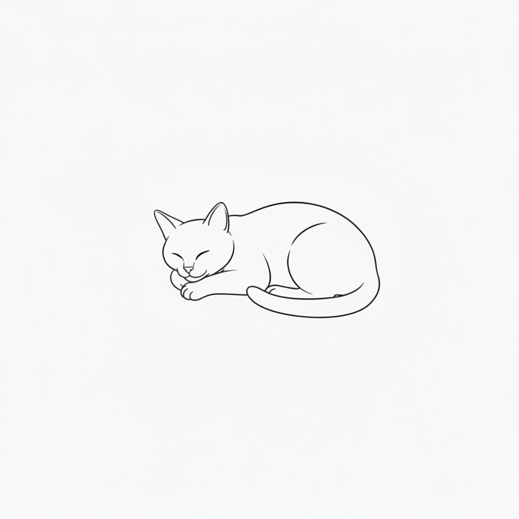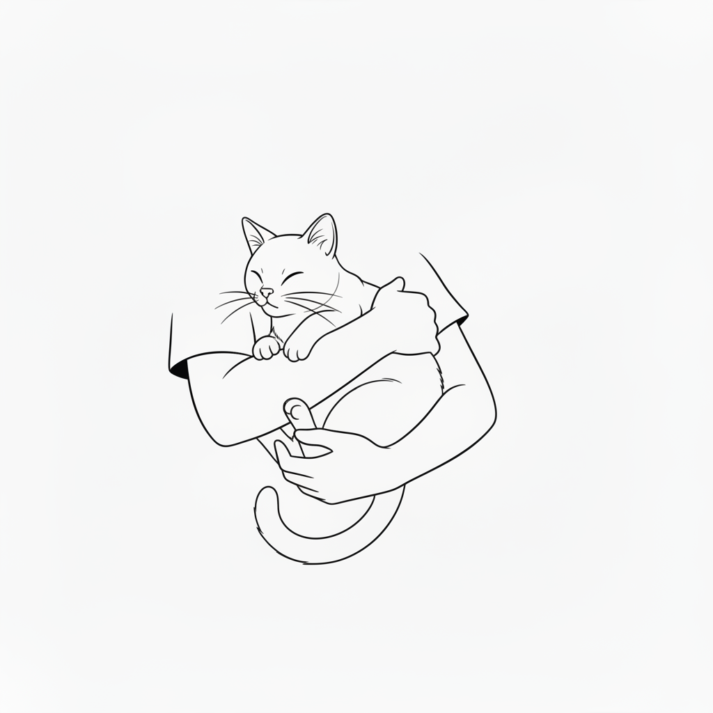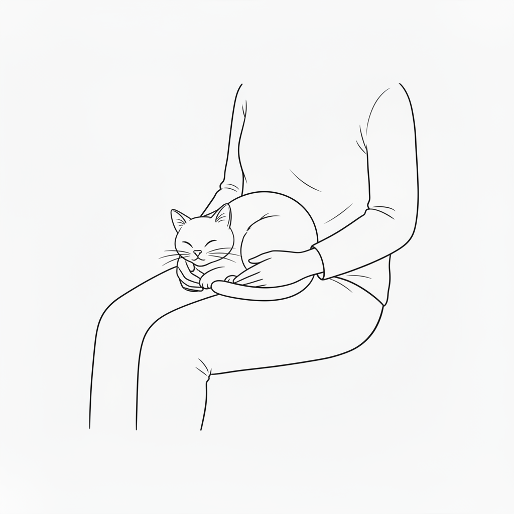 膝の上で眠る猫線画|人と猫のスキンシップ