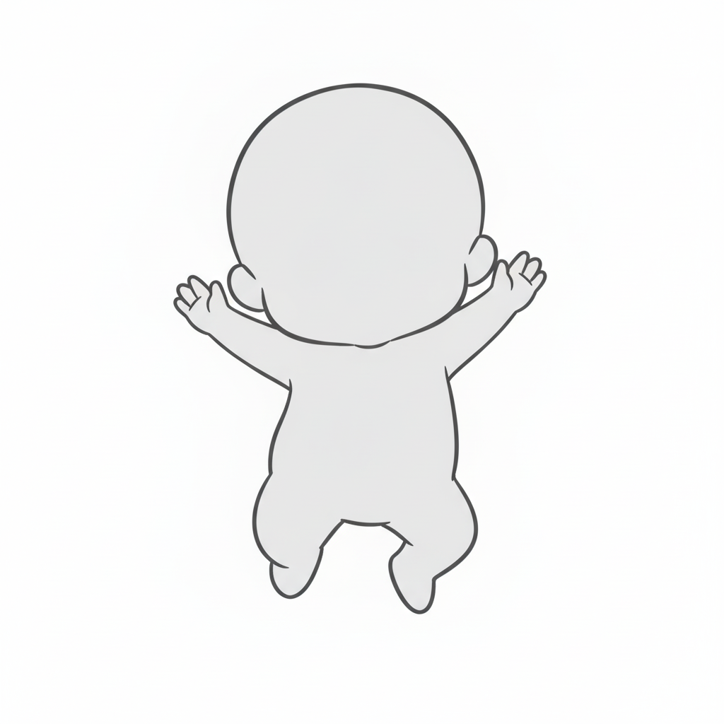 腕を広げた子供の小ジャンプ後ろ姿ポーズ|使いやすい線画参考素材