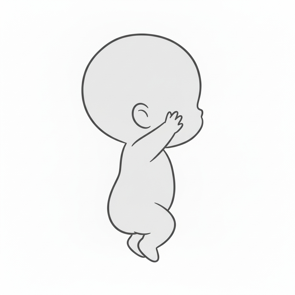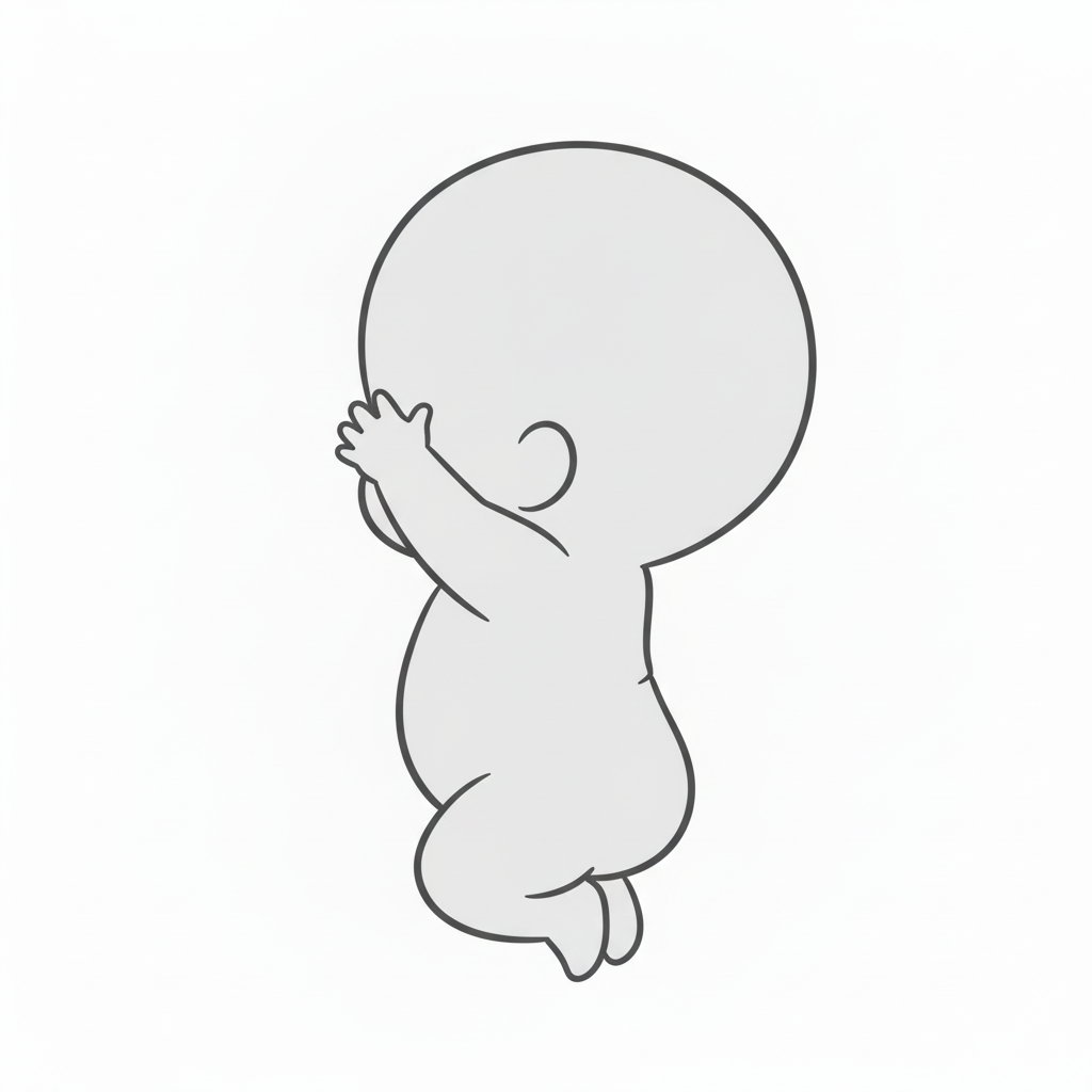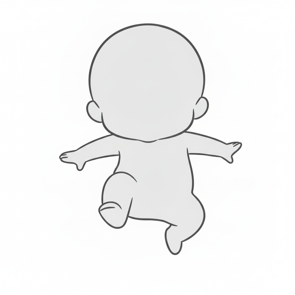 顔を押さえてジャンプする子供の横向きポーズ|チビキャラ線画資料