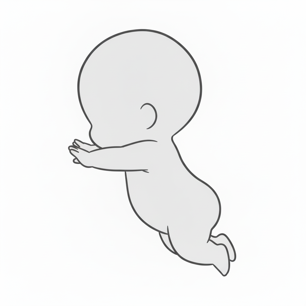 前方に飛び出す子供のジャンプ横向きポーズ|ダイブ風チビキャラ線画