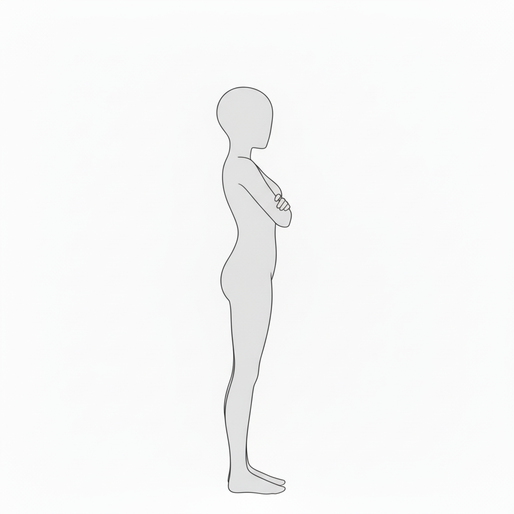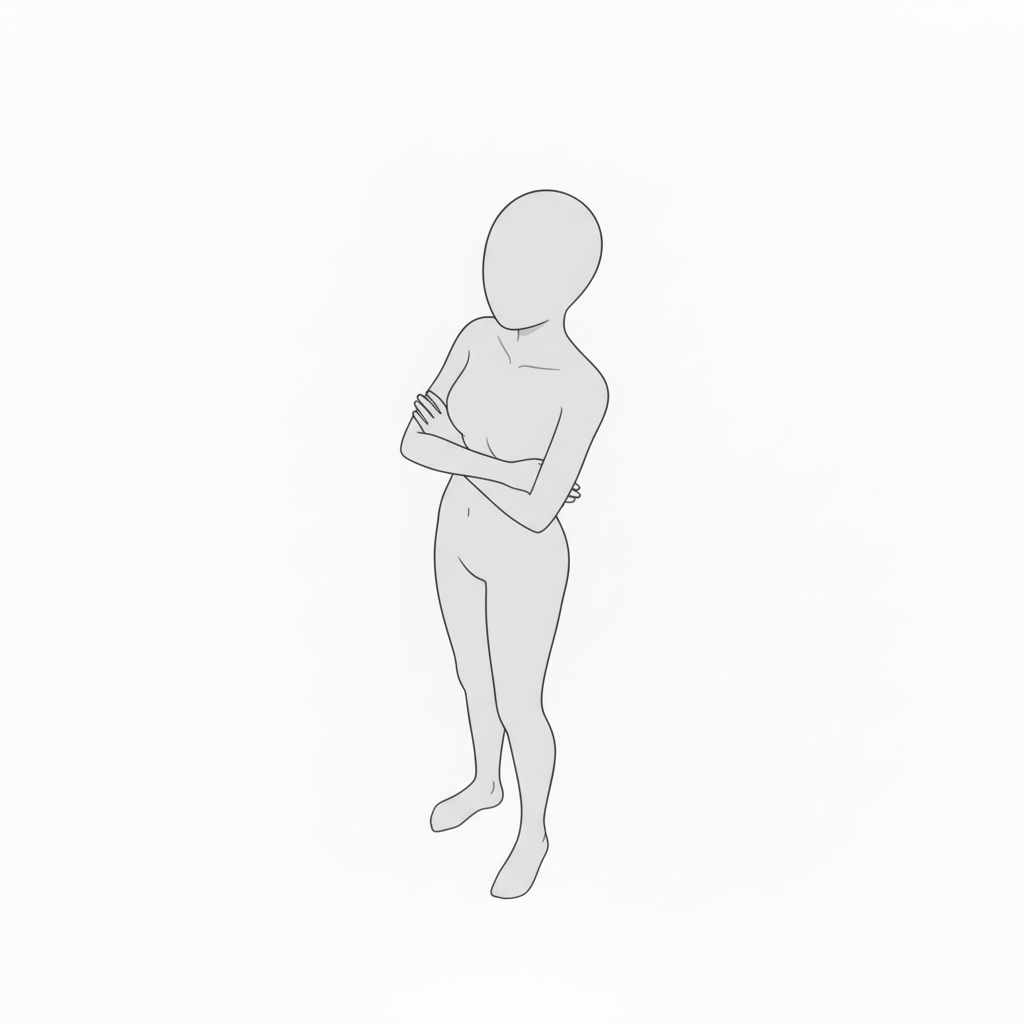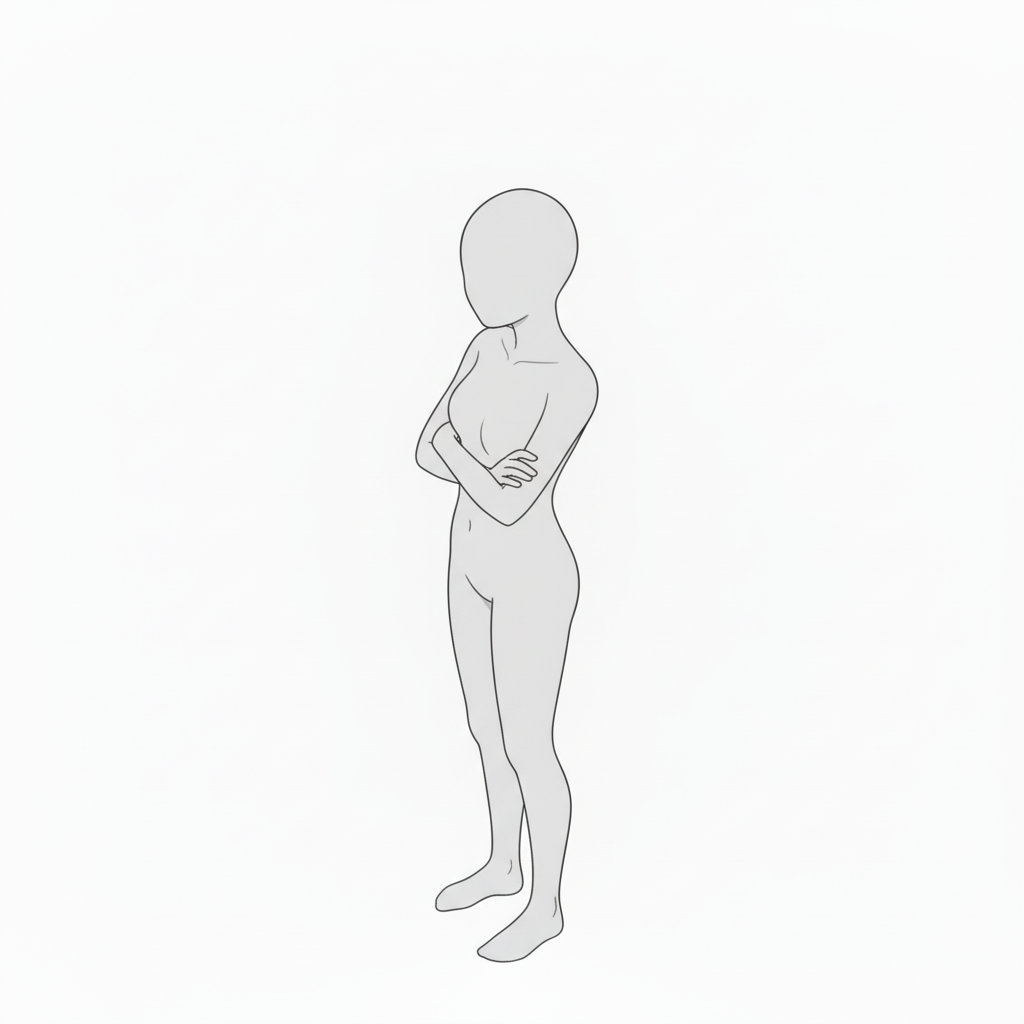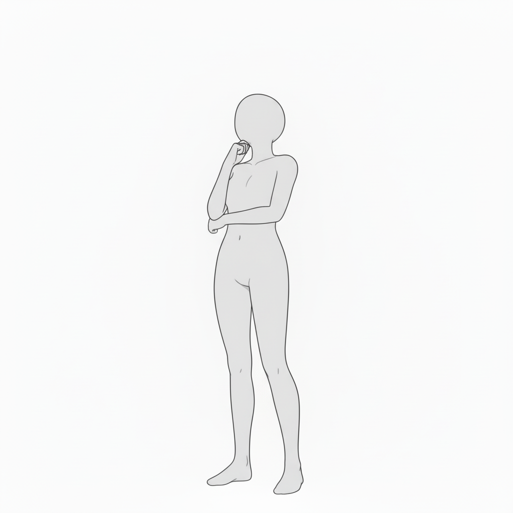 思考中のシーンや、冷静なキャラクターの描写に使いやすい立ちポーズです。