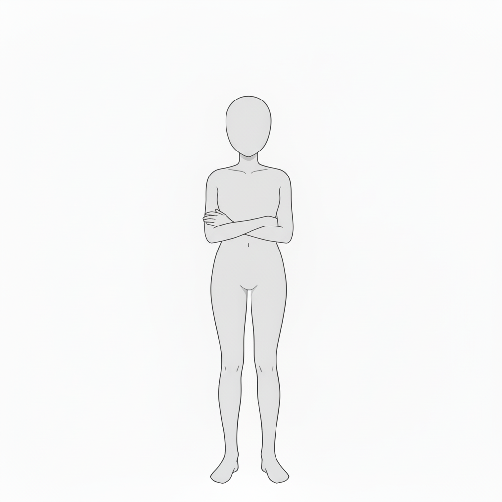 自然な立ち姿を意識した構図。キャラクタービジュアルや立ち絵素材に最適。