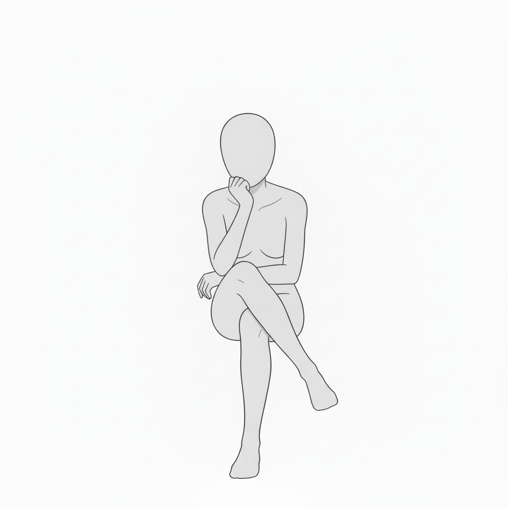 前傾姿勢の足組みポーズ|悩みや沈思を表すリアルな座り方