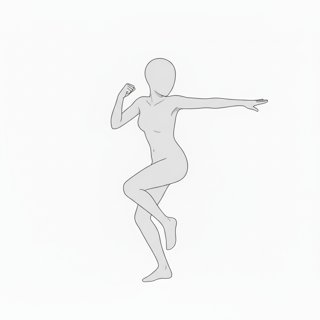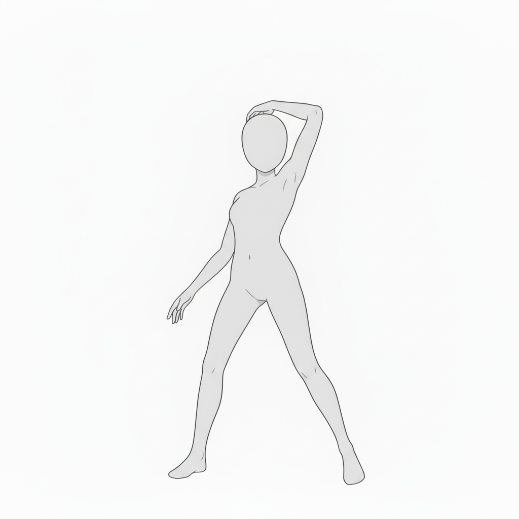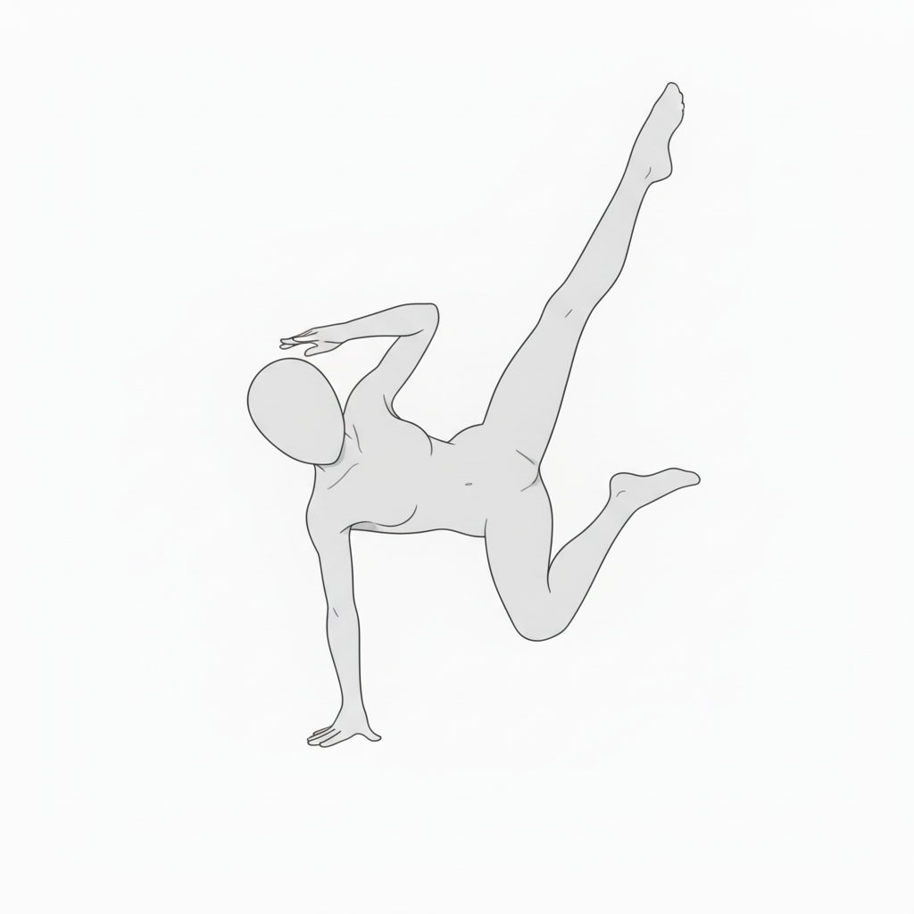 高く伸ばした脚と体幹の美しいラインが特徴。アニメやイラストの決めシーンに最適です。