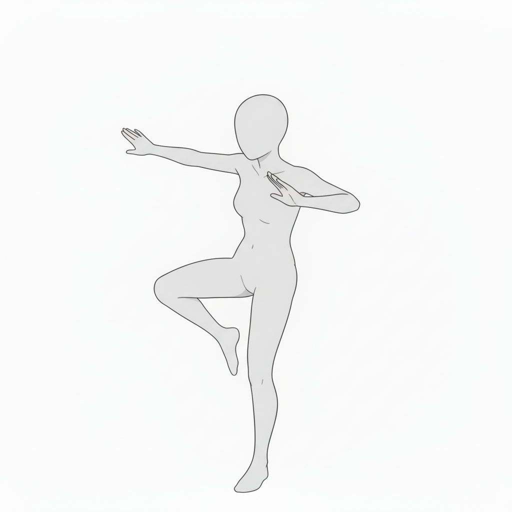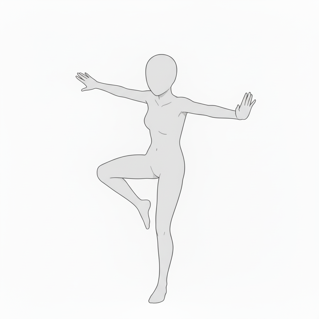 片足立ちで両腕を広げた構図。リズム感と安定感の両方を表現できるシーンにおすすめ。
