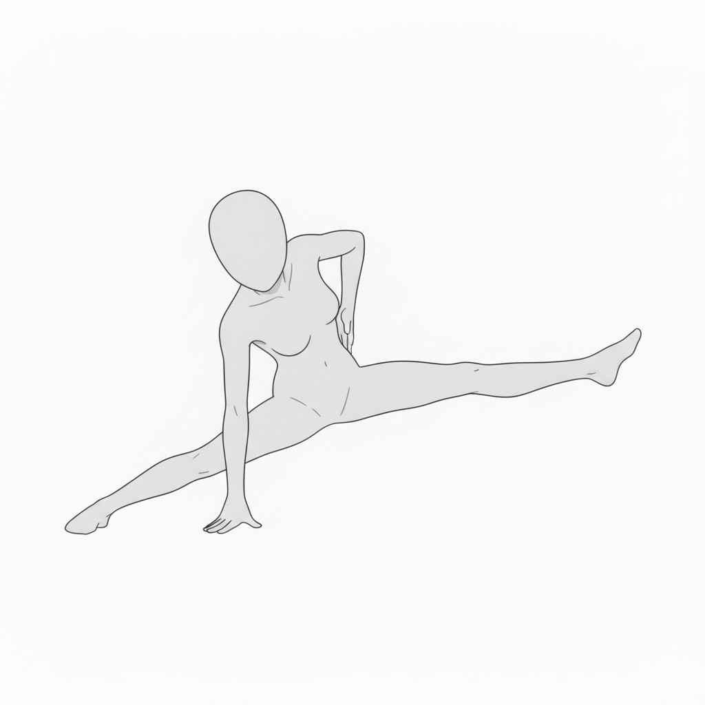 体を支えながら開脚する構図。重心としなやかさを両立したポーズで表現の幅を広げます。