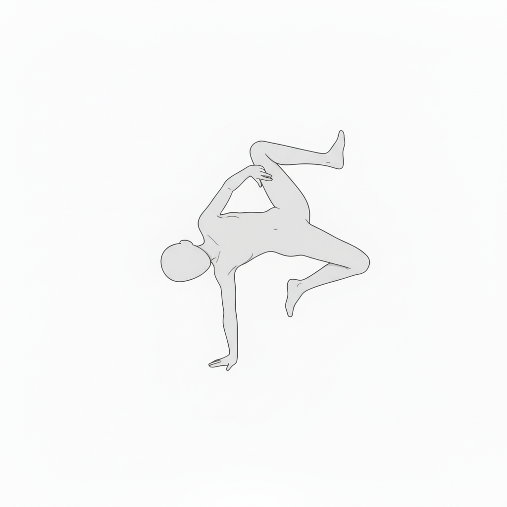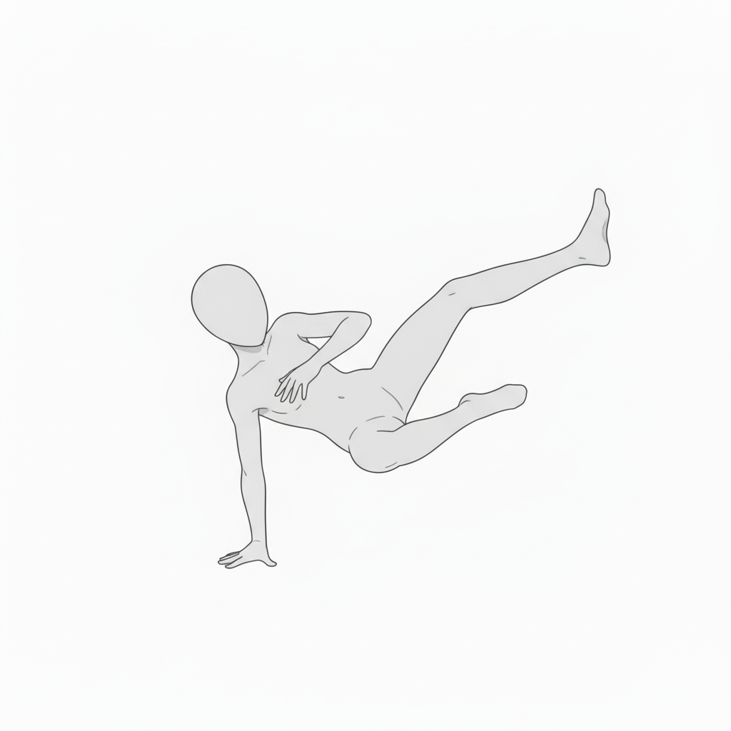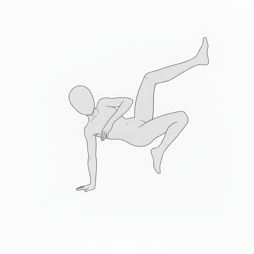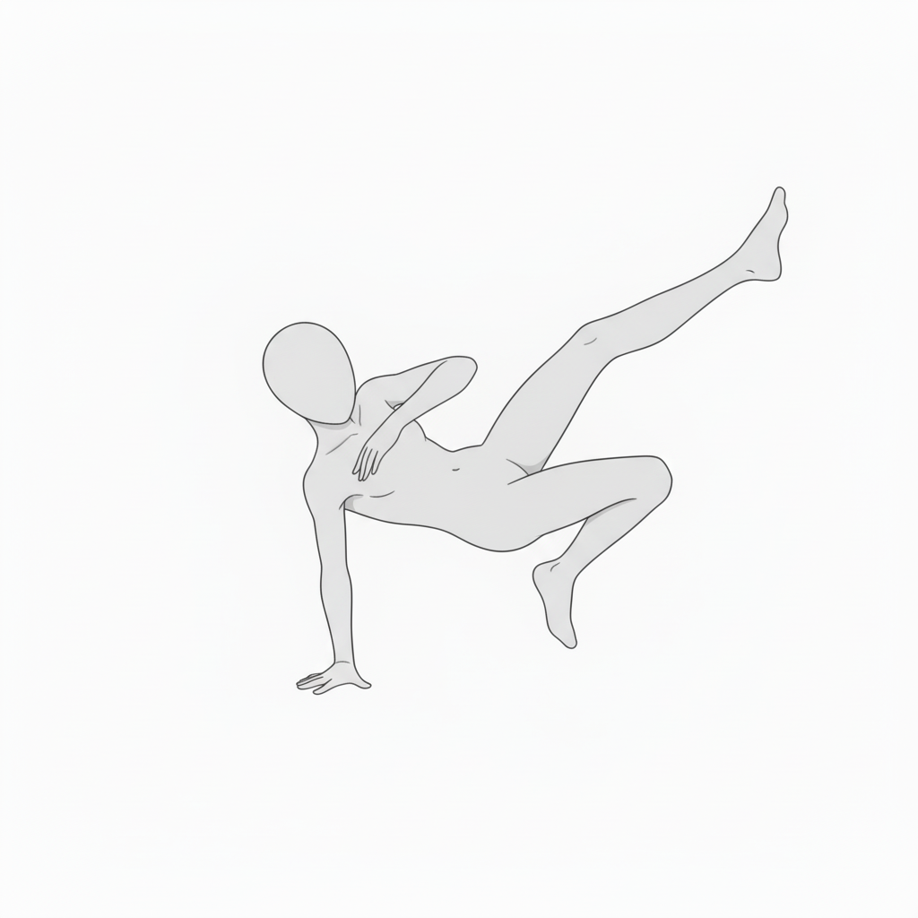 体をひねりながら片手で支えるポーズ。アクションやブレイクダンスの動きに活用できます。