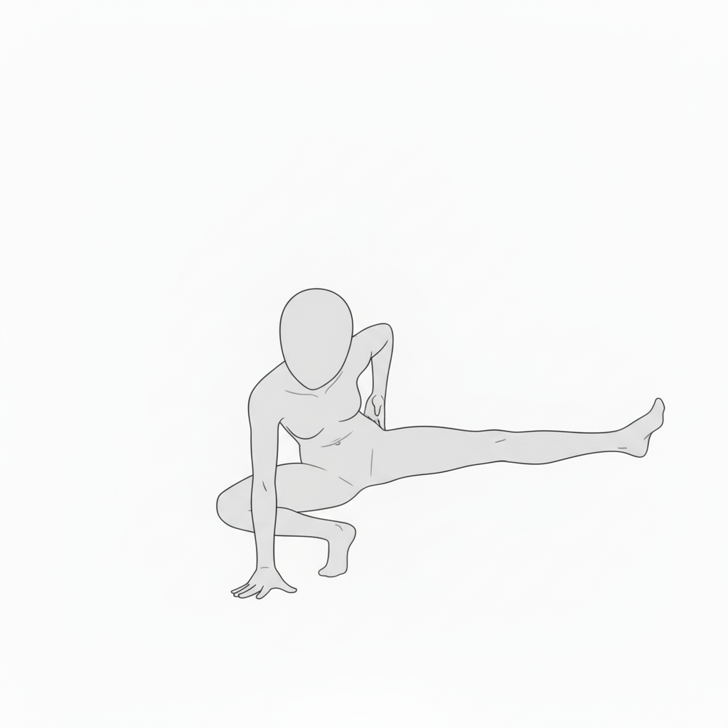 片手で体を支えながら片脚を伸ばす姿勢。動きの方向や力の流れを理解するのに最適です。