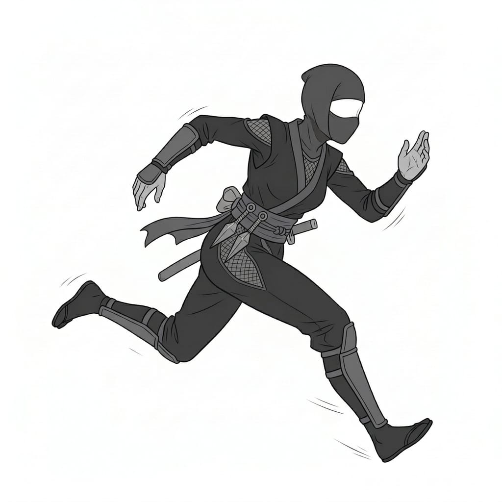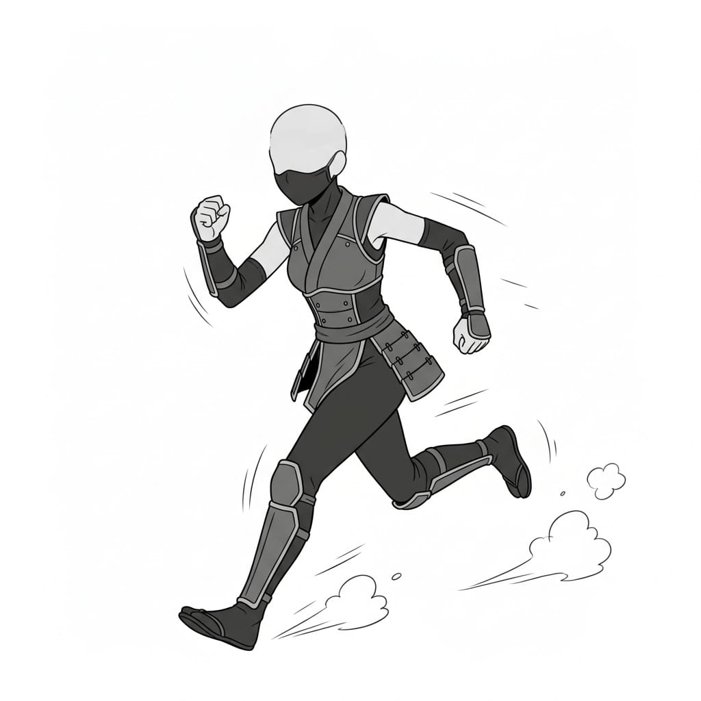 走る女忍者の全身アクションポーズ|イラスト・マンガ用ポーズ素材