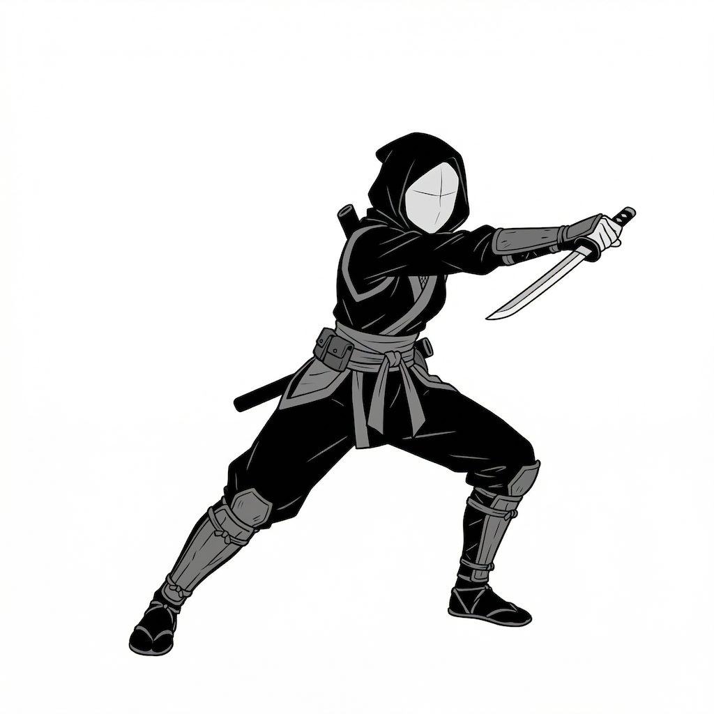 短刀を構える女忍者の攻撃ポーズ|剣術アクション用ポーズ素材
