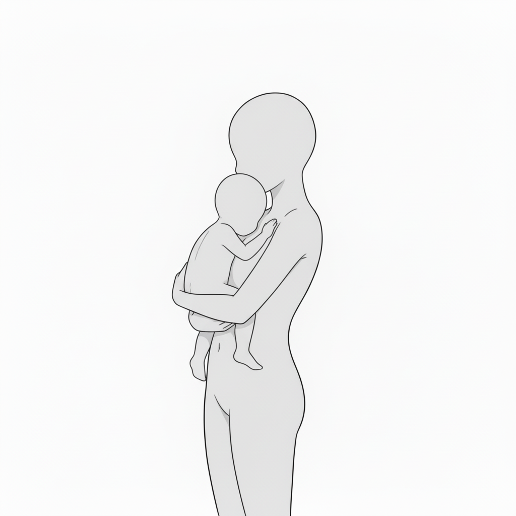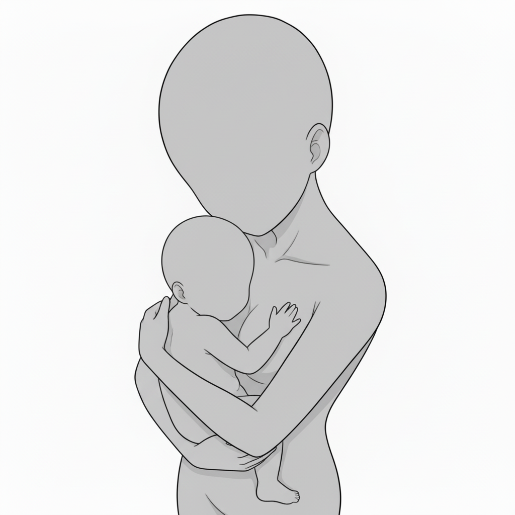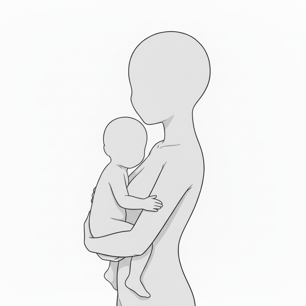 母親が上から見下ろす視点で描かれた抱っこポーズ。相手を見下すような表現に使用しやすいポーズ。
