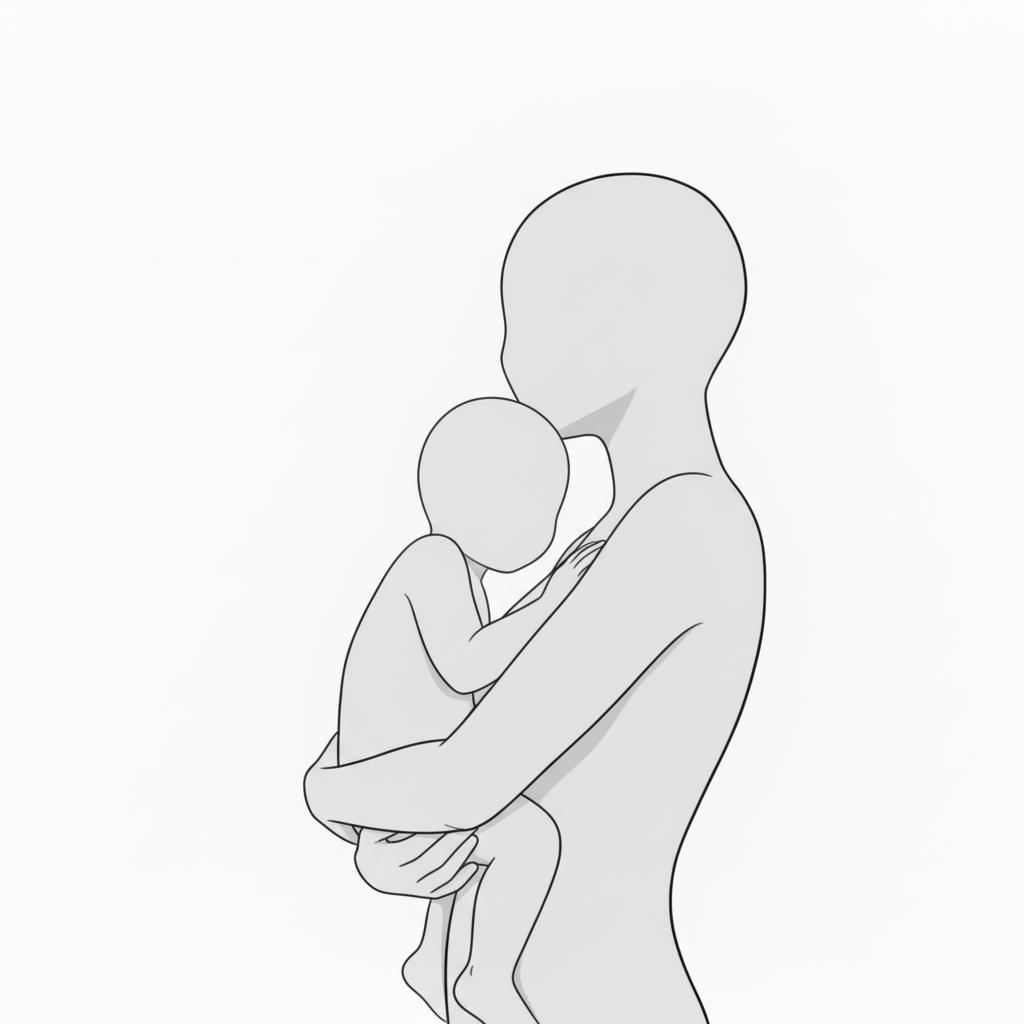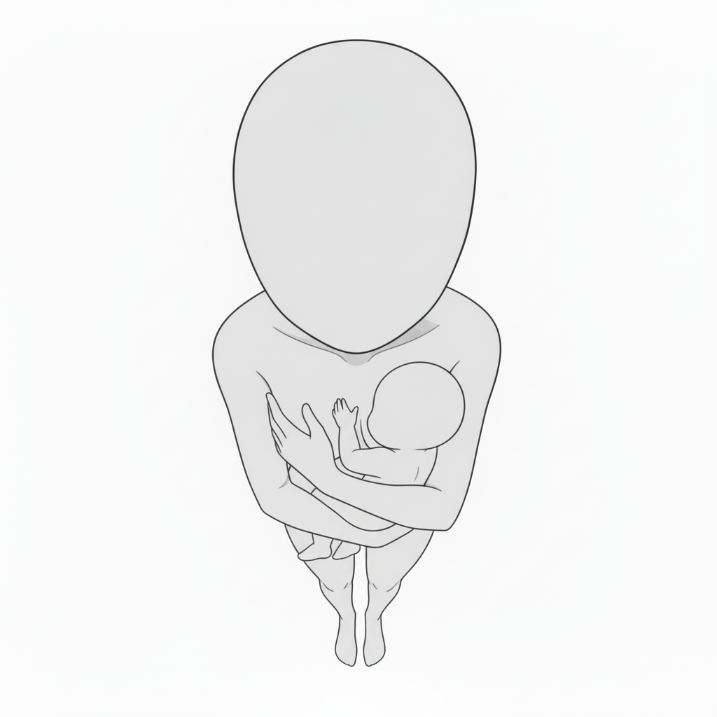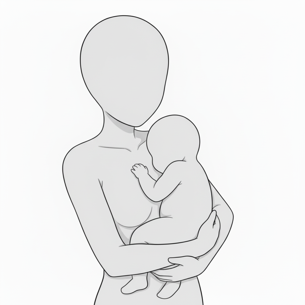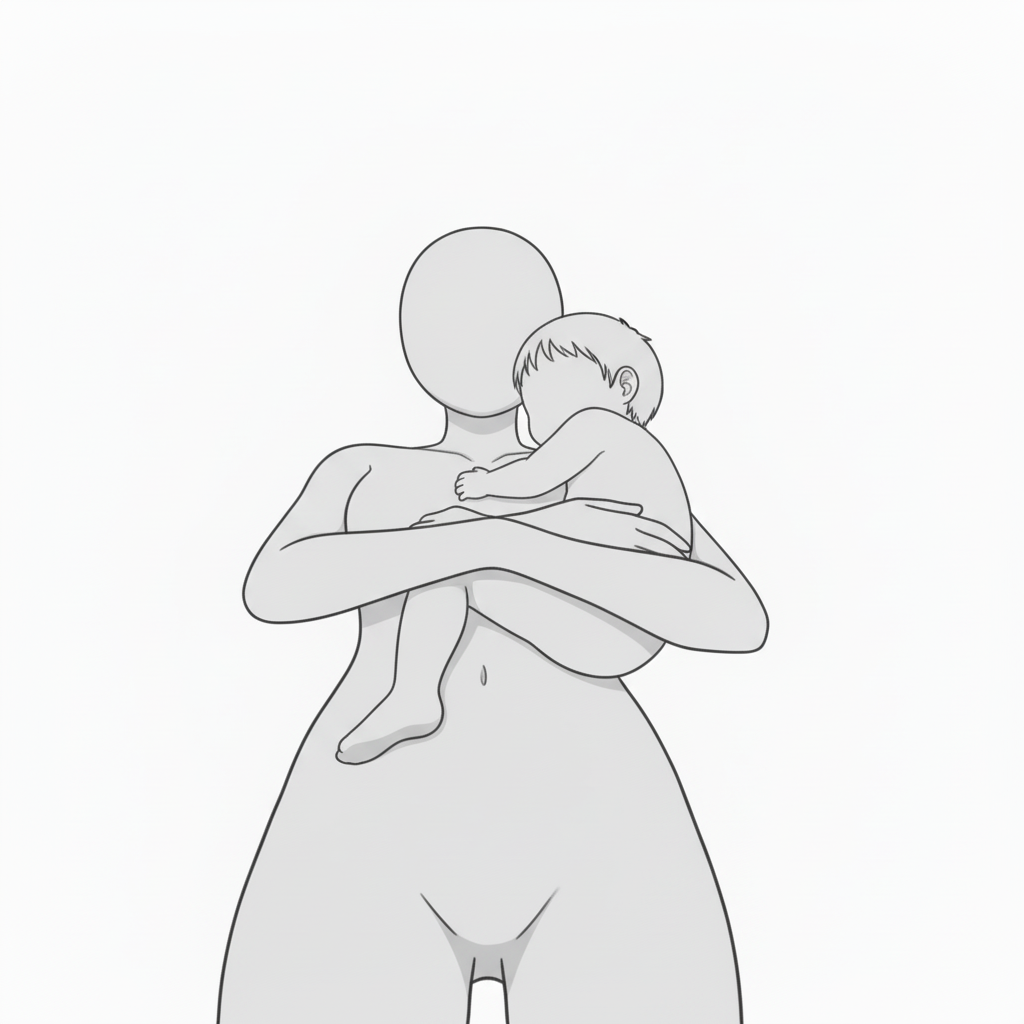 母親が上から見下ろす視点で描かれた抱っこポーズ。相手を見下すような表現に使用しやすいポーズ。