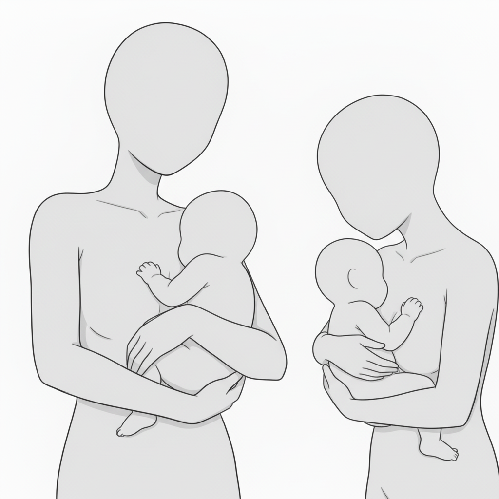 二人の親が赤ちゃんを抱く構図|家族の温もりを描く練習に