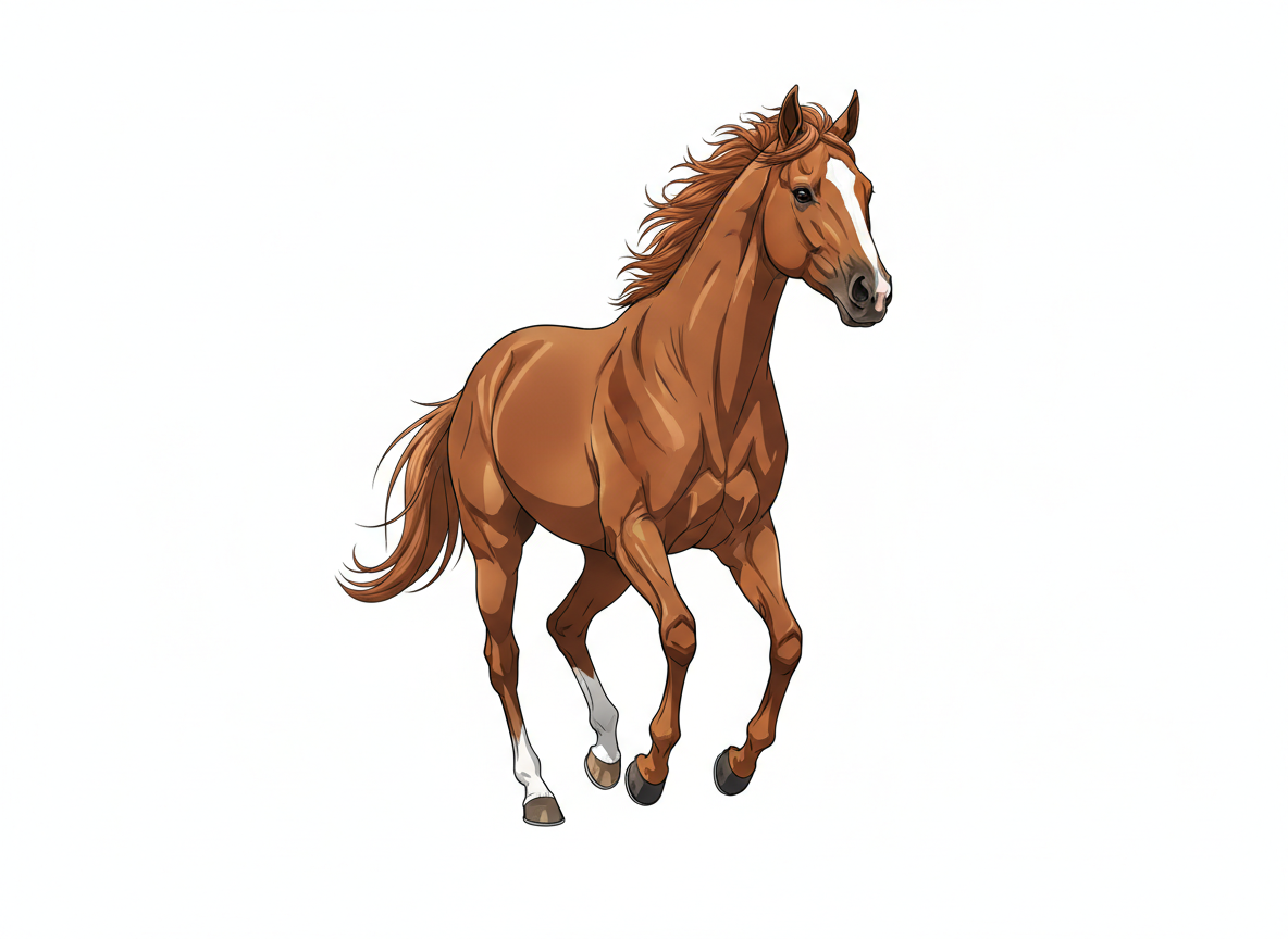 説明文: 軽やかに走る馬の姿を描いたポーズ。アニメや漫画の動き表現に最適です。