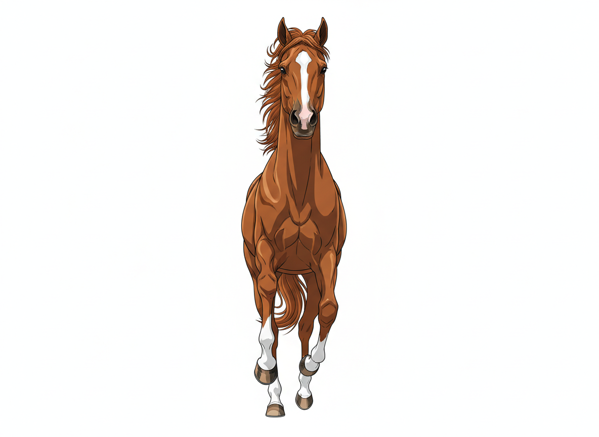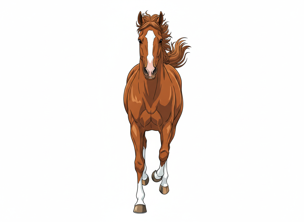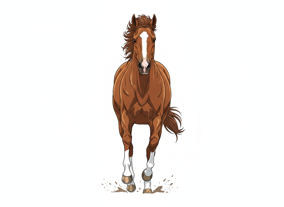 正面から走る馬のポーズ|迫力ある疾走構図イラスト