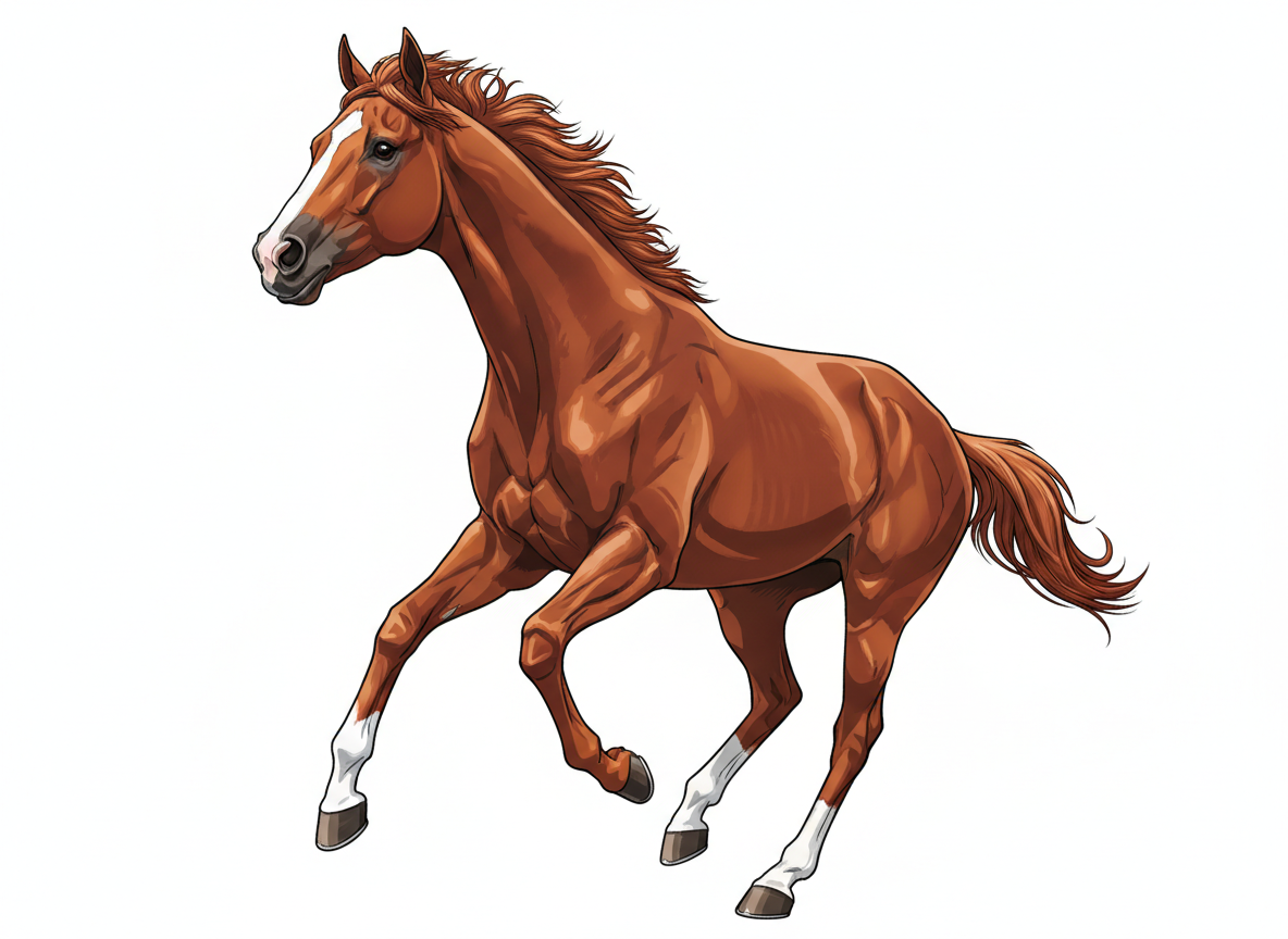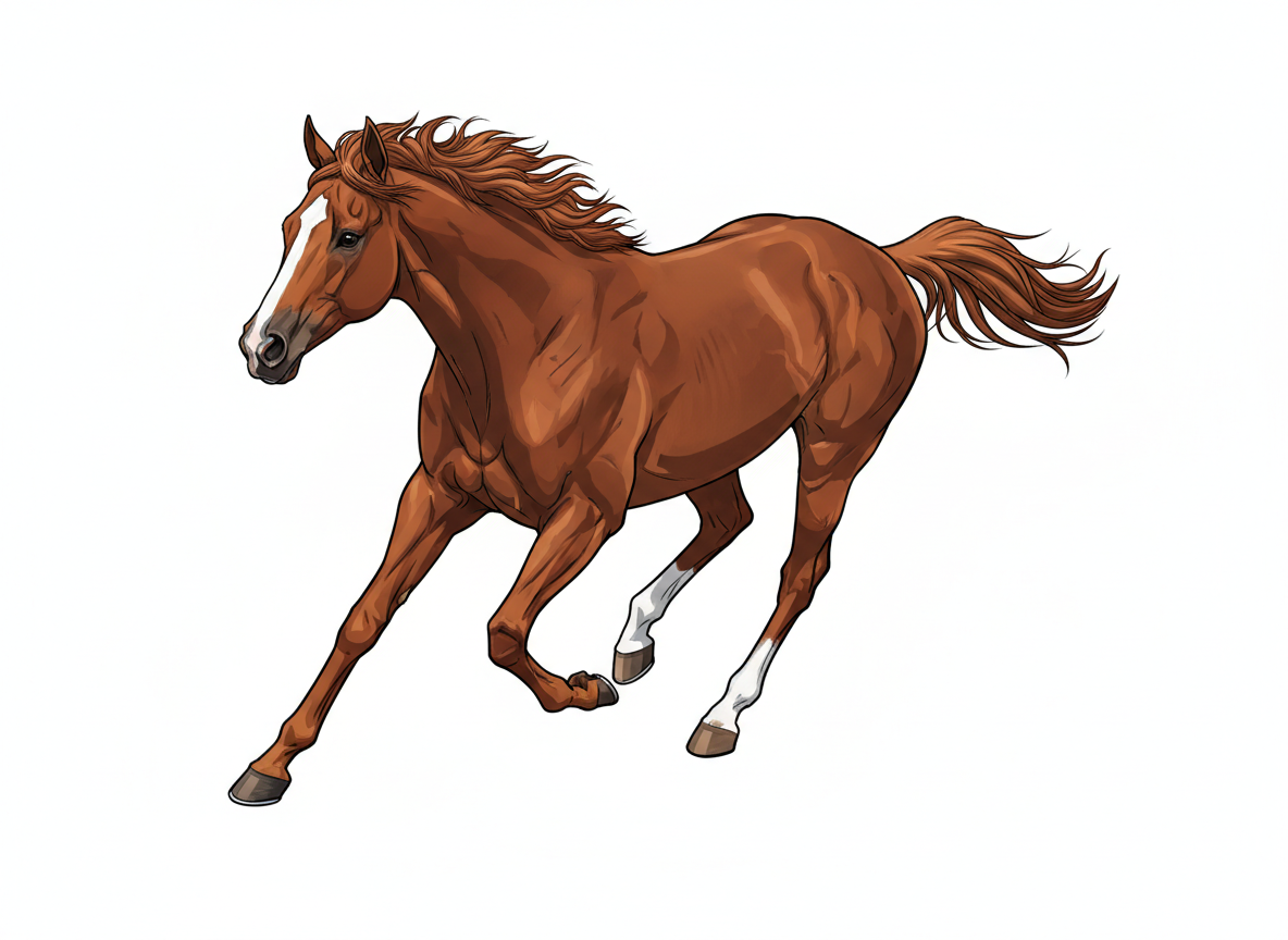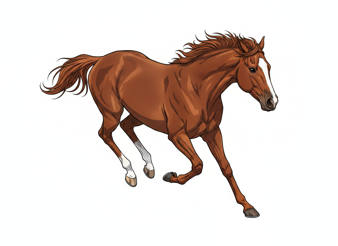 馬の典型的な走行バランスを表現。構図練習やキャラ作画にも使いやすい素材です。