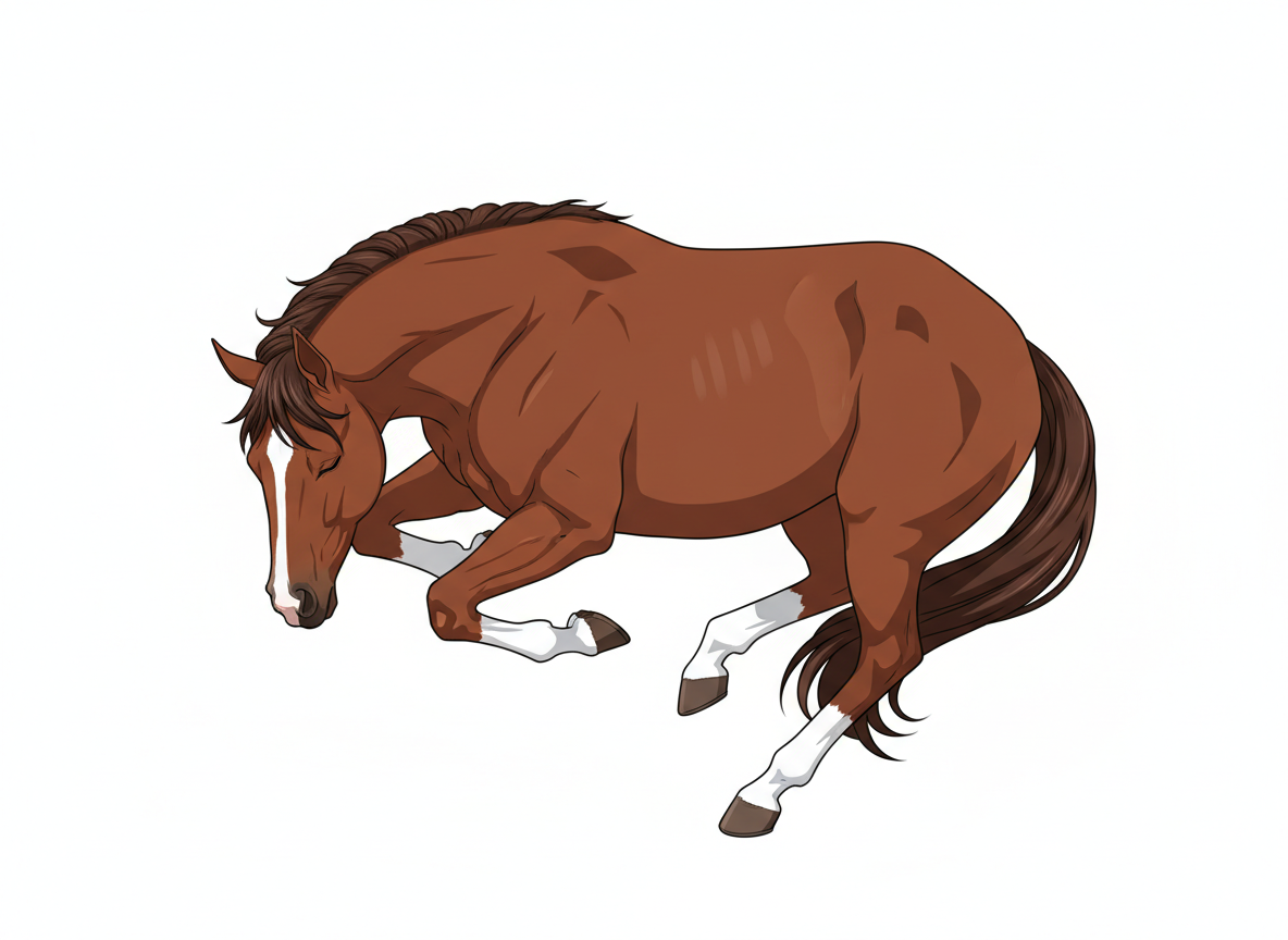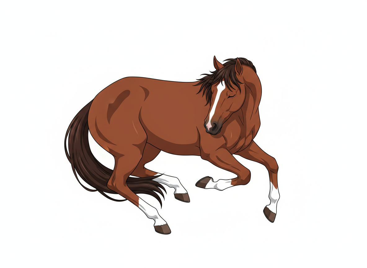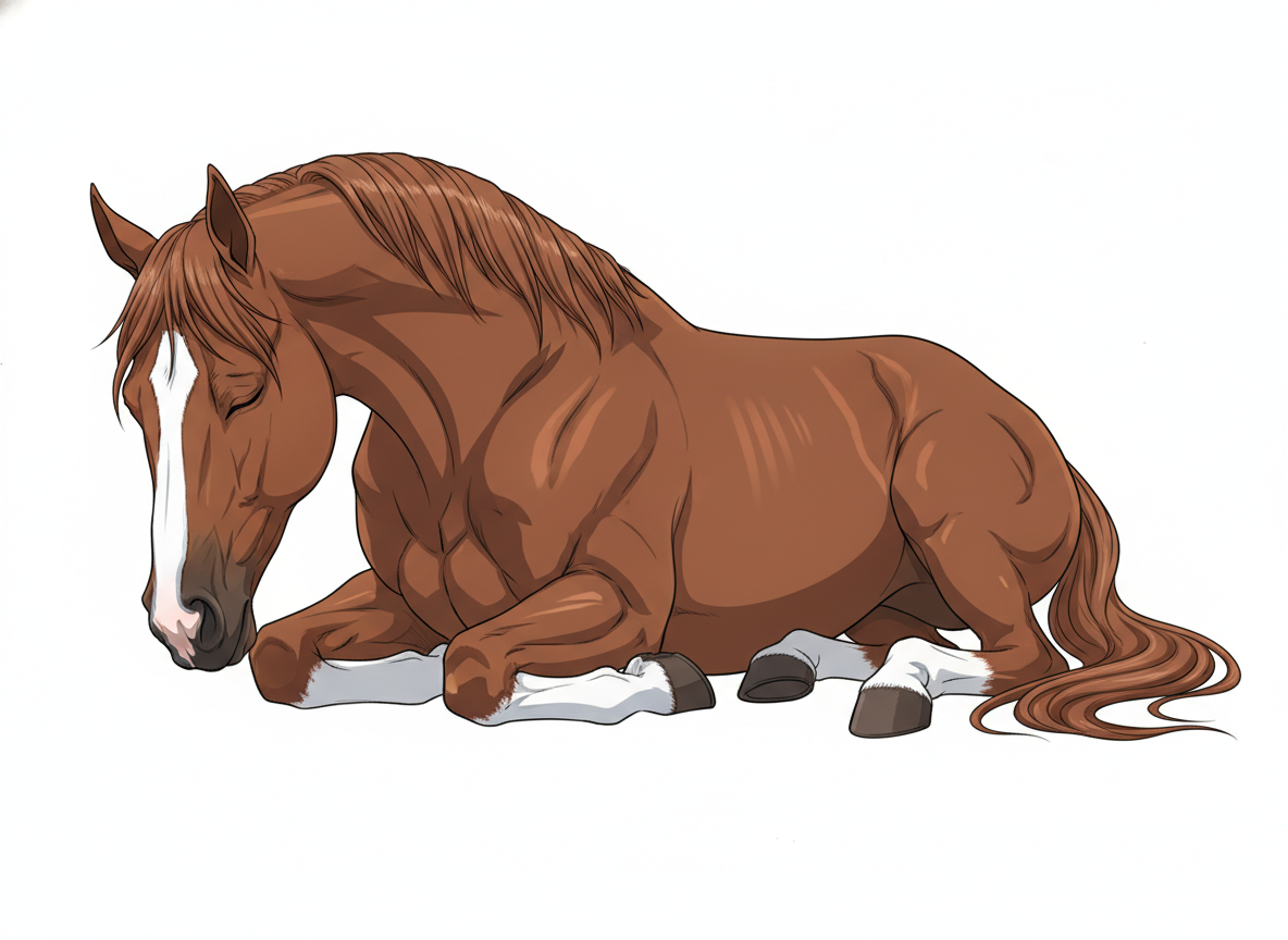 眠る馬のポーズ・休息構図|優しい雰囲気のイラスト素材