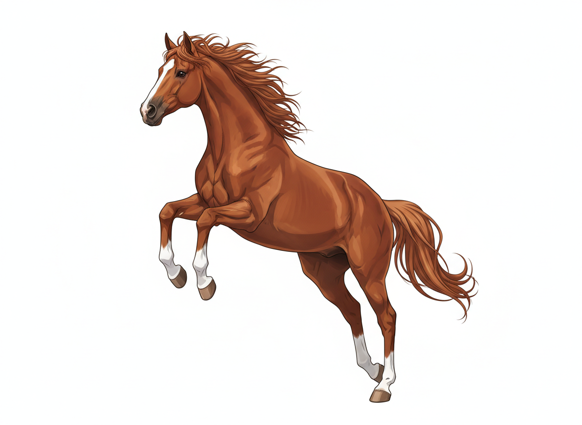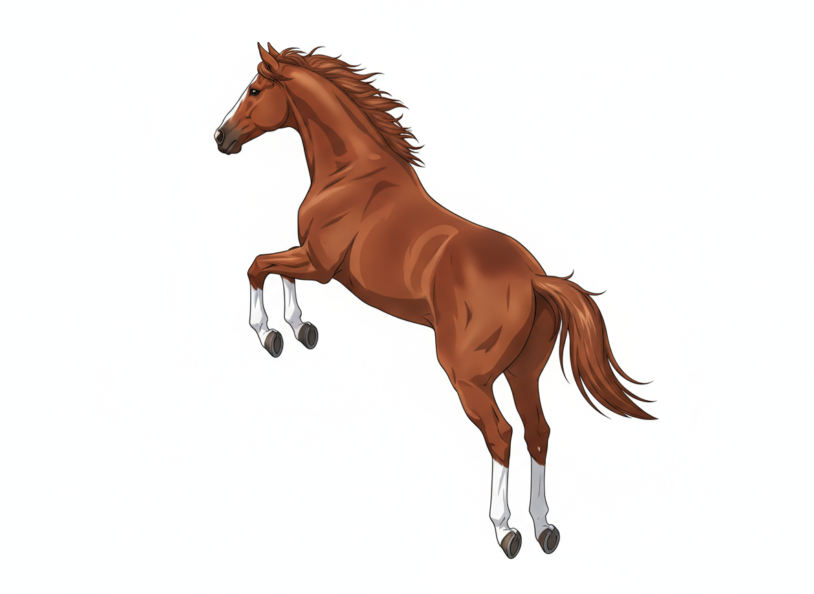 馬が前方へ跳び上がるポーズ|迫力あるジャンプシーン素材