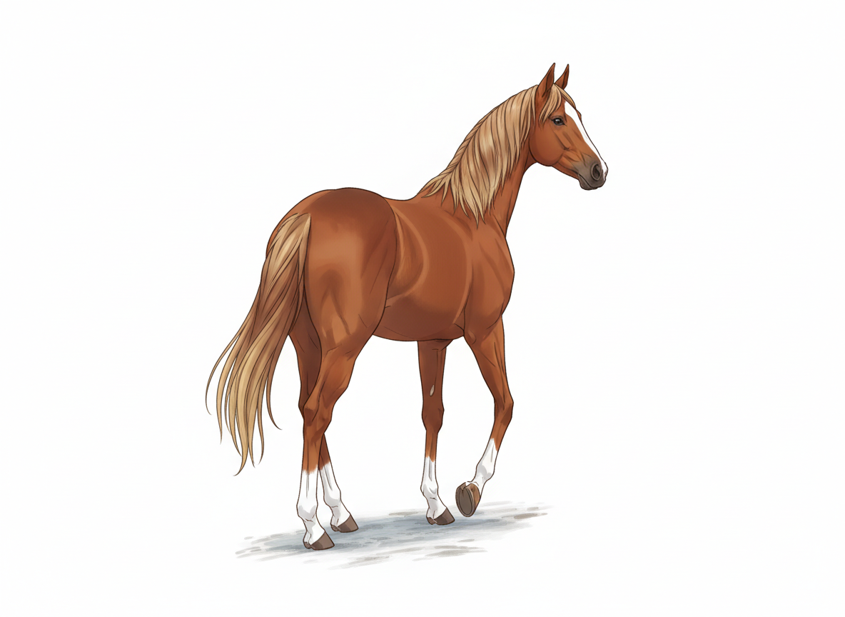 馬の美しい体のラインと尾の動きを強調。アニメーションの流れ作りに最適です。