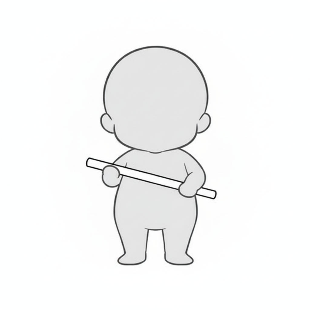 長い棒を両手で持つ正面向きの作業・準備シーン向けポーズ素材です。