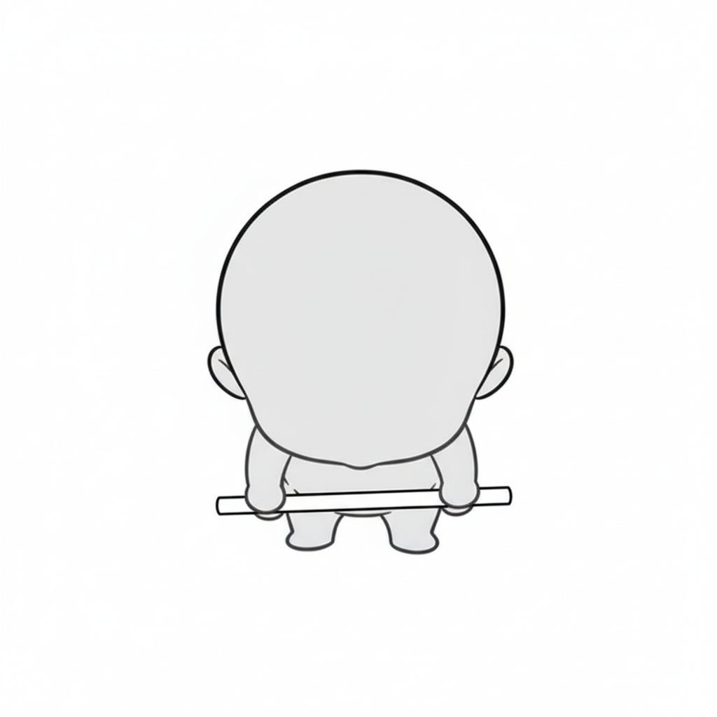 背面から棒を持つ姿が見えるため、後ろ姿の作画に便利なポーズ素材です。