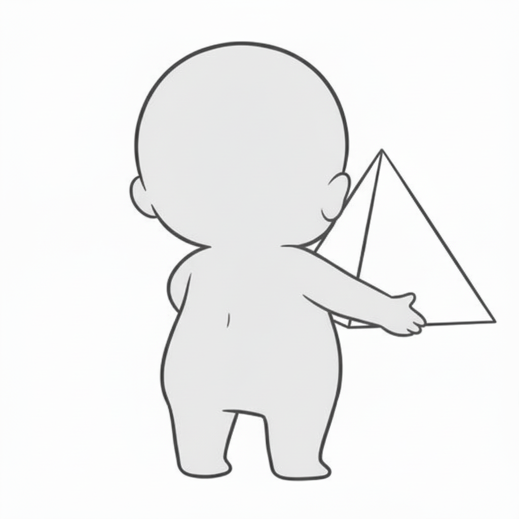 三角形オブジェクトを運ぶ後ろ姿を描ける背面ポーズ素材です。
