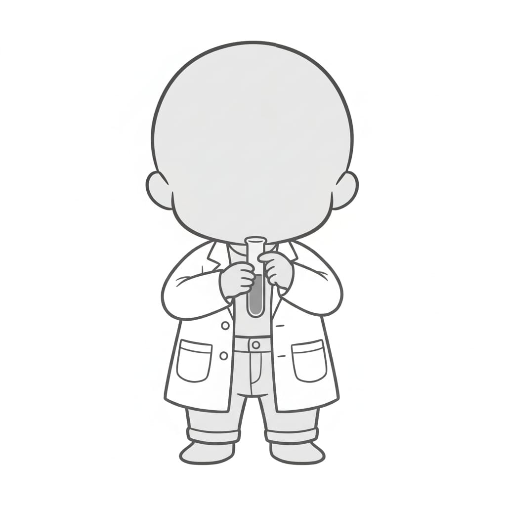 白衣の子どもが試験管を持つ正面立ちポーズ|ちびキャラの研究者人物素材