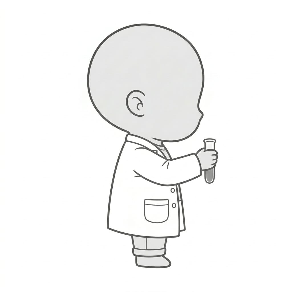 横からのシルエットで実験中の動作を描きやすい、白衣の子どものサイドポーズ素材です。