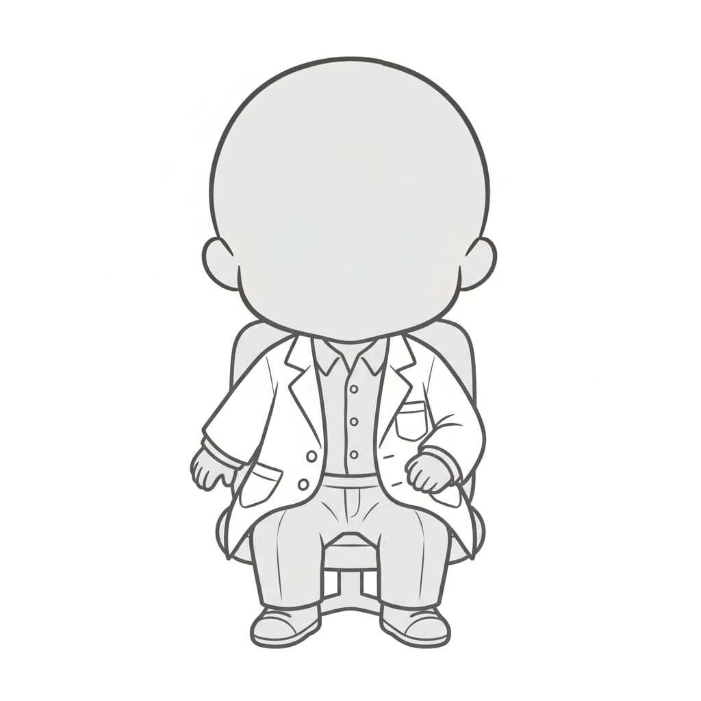 椅子にちょこんと座る姿を表現できる、診察や待機シーンにも使いやすい着座ポーズ素材です。