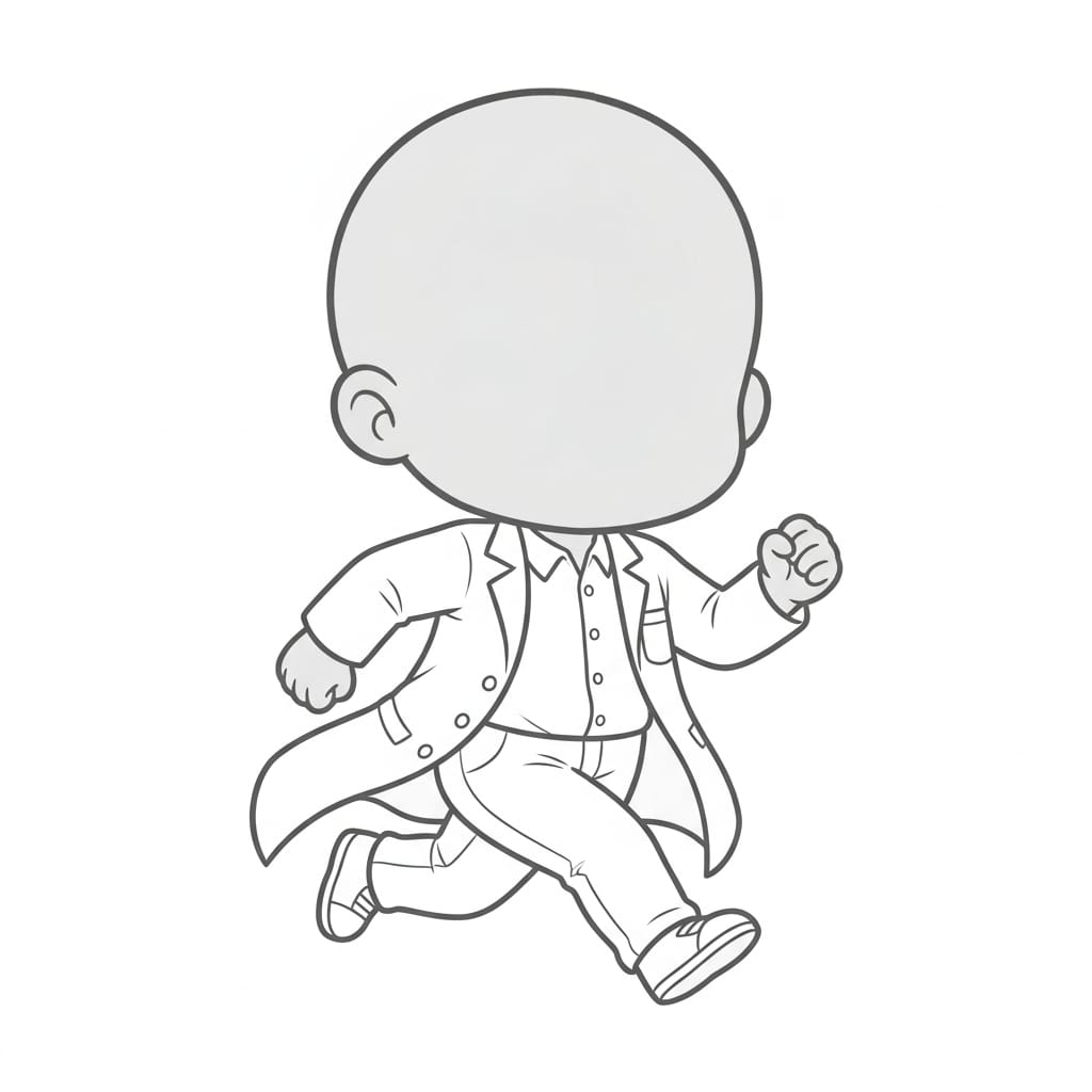 白衣の子どもが走る全身アクションポーズ|ちびキャラの医療・研究者素材