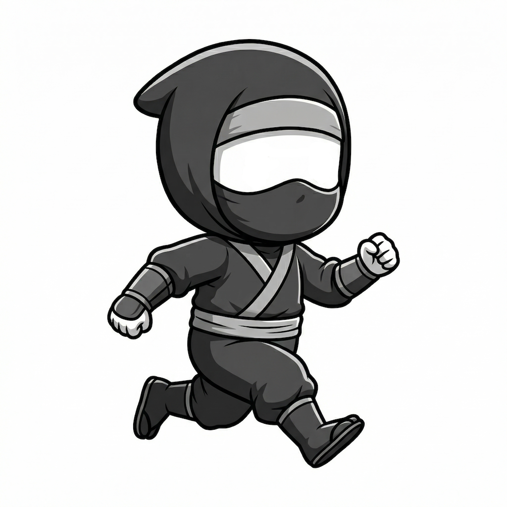 小さな体で元気よく走る子ども忍者を描いた、親しみやすいアクションポーズ素材です。