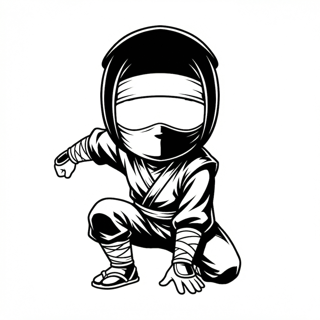 低い姿勢で地面に手をつく子ども忍者を描いた、着地や待機シーンに便利な素材です。