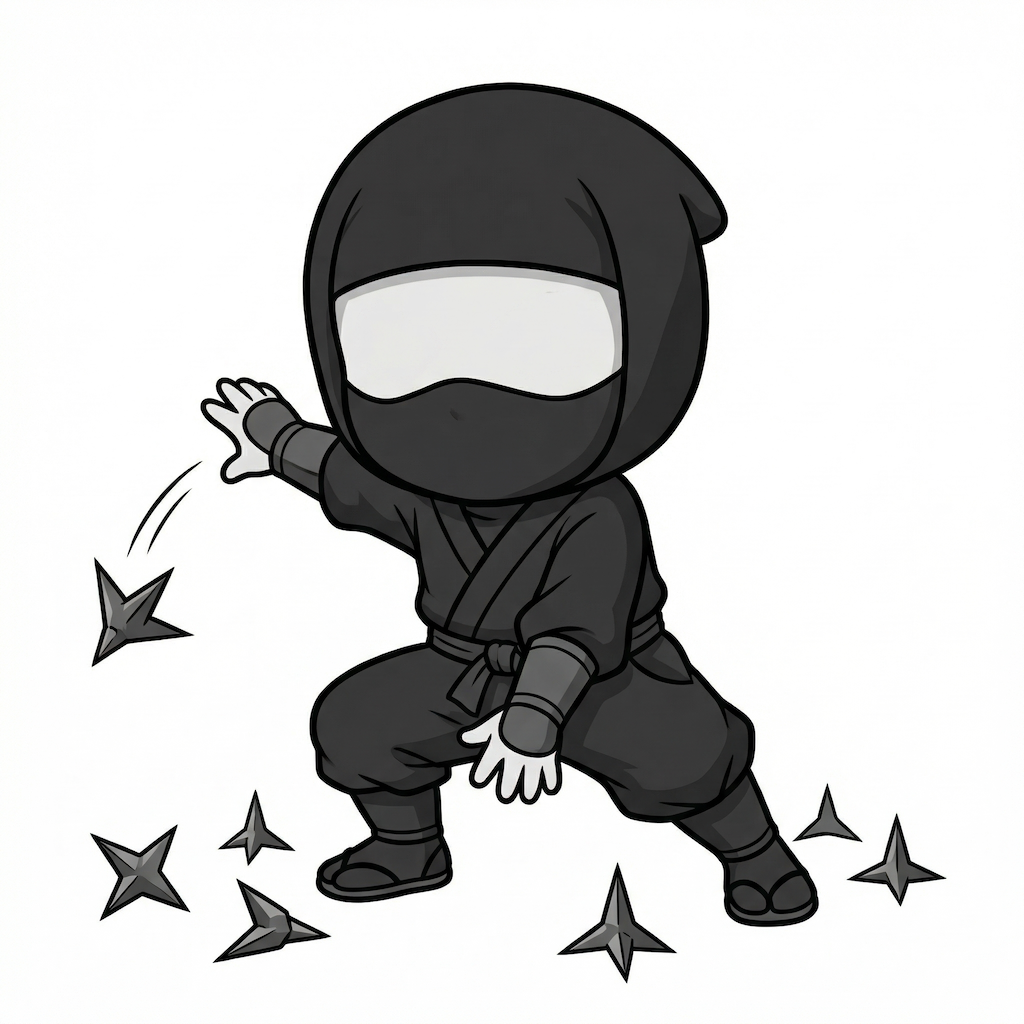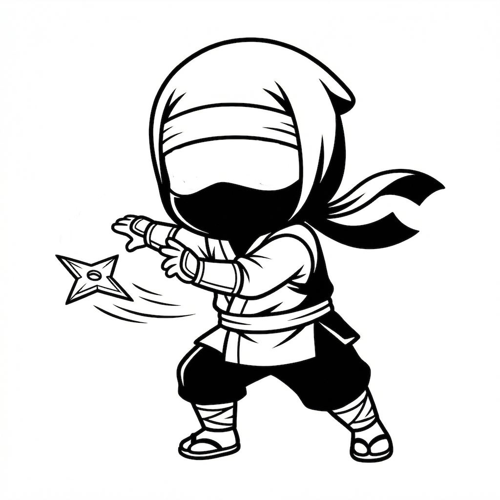 手裏剣を投げる子ども忍者の攻撃ポーズ|デフォルメ忍者素材