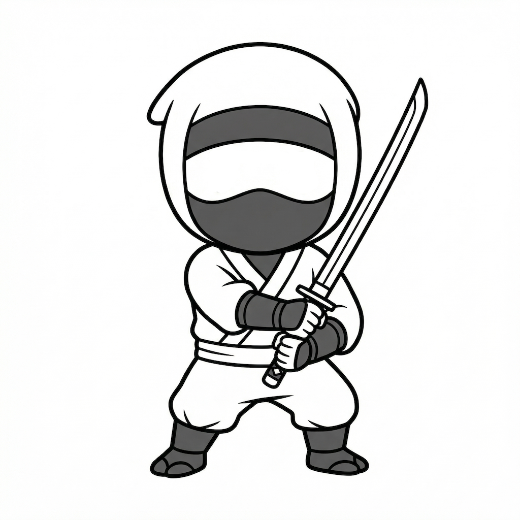 両手で刀をしっかり握る子ども忍者の姿を描いた、剣術シーン向けの素材です。