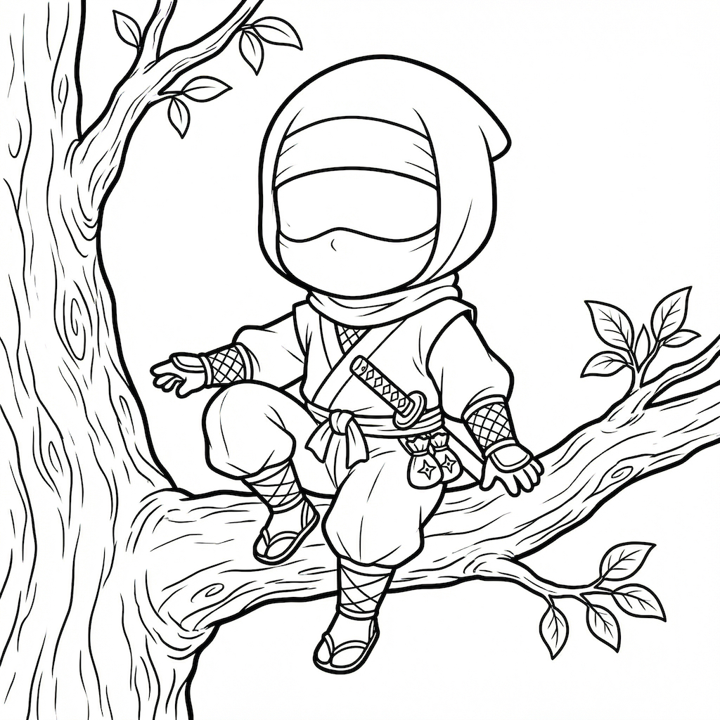 木の上で静かに腰掛ける子ども忍者を表現した、見張りや休憩シーンに使いやすい素材です。