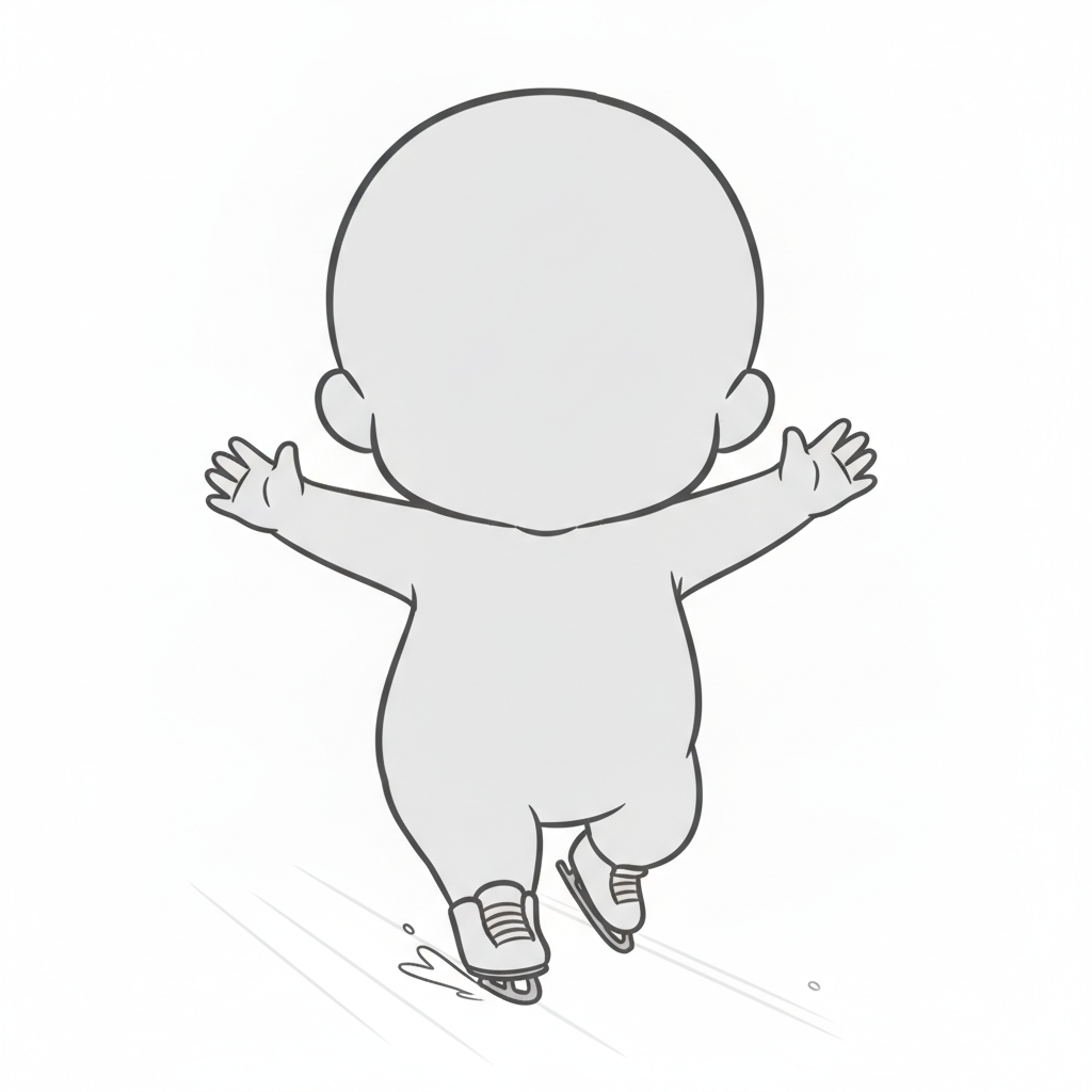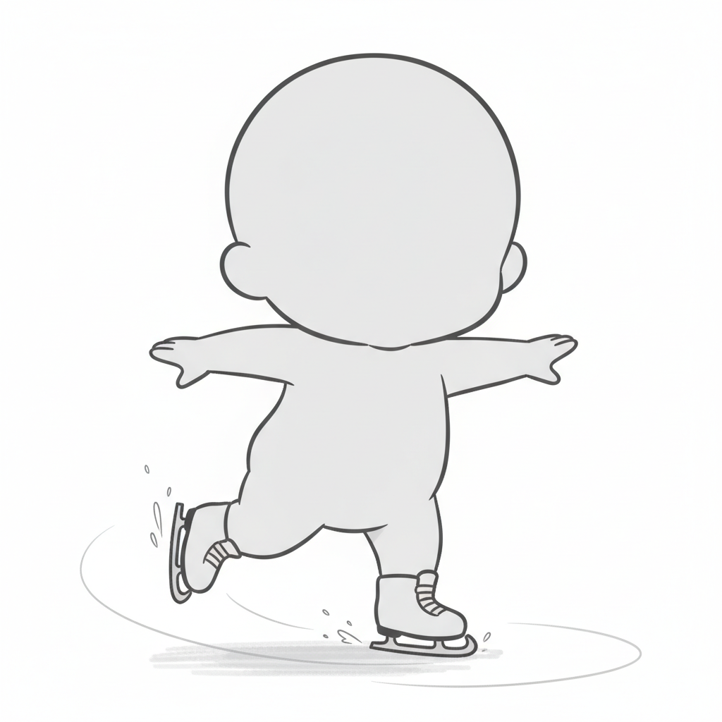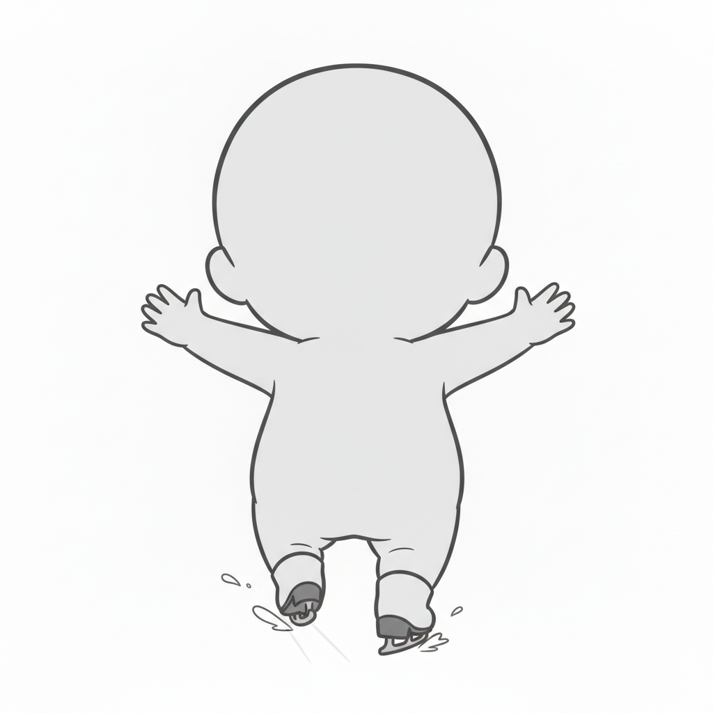 フォームの重心が分かりやすく、かわいい滑走シーンの参考になります。