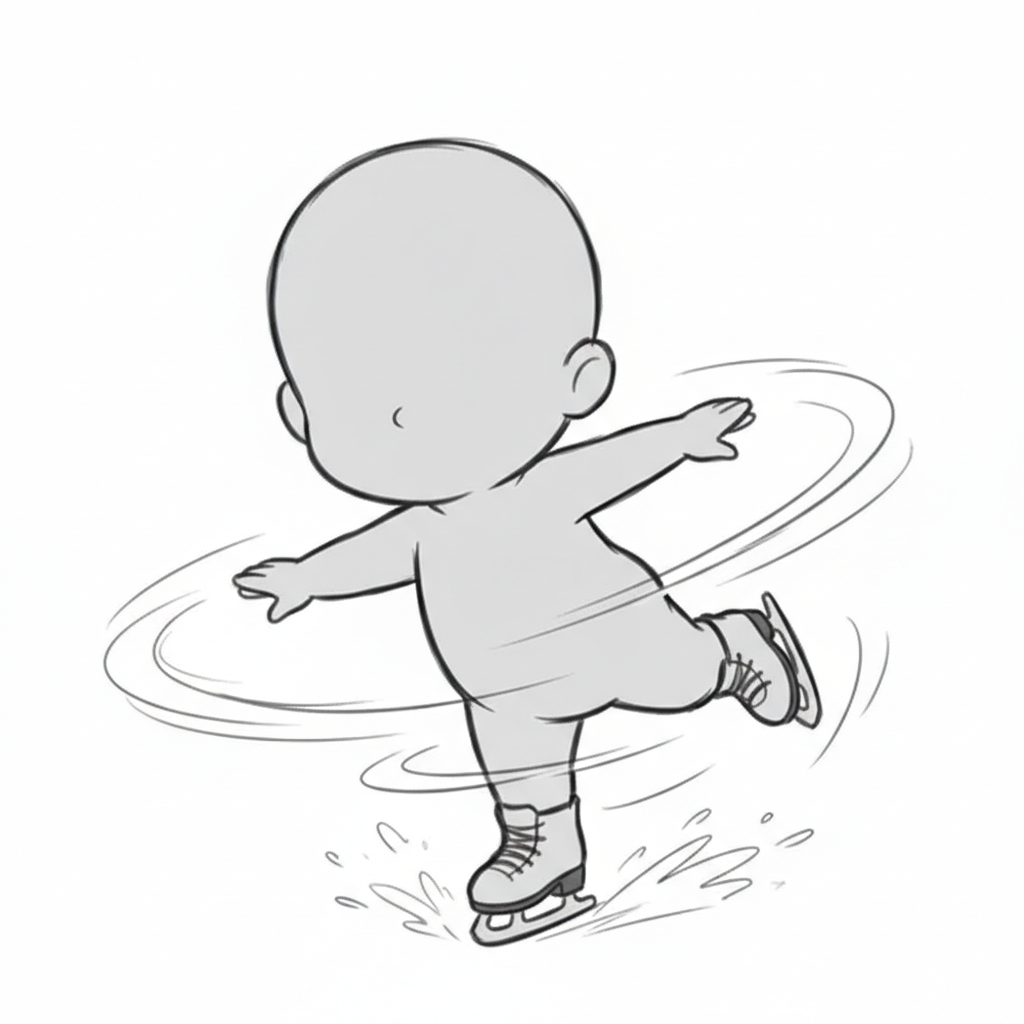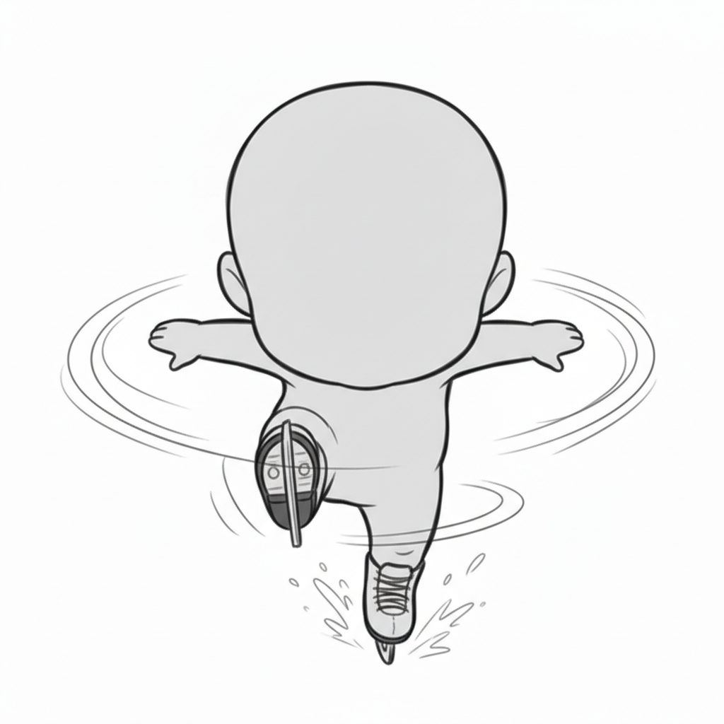 回転の軌道線付きで、フィギュアスケートの演技表現に最適です。