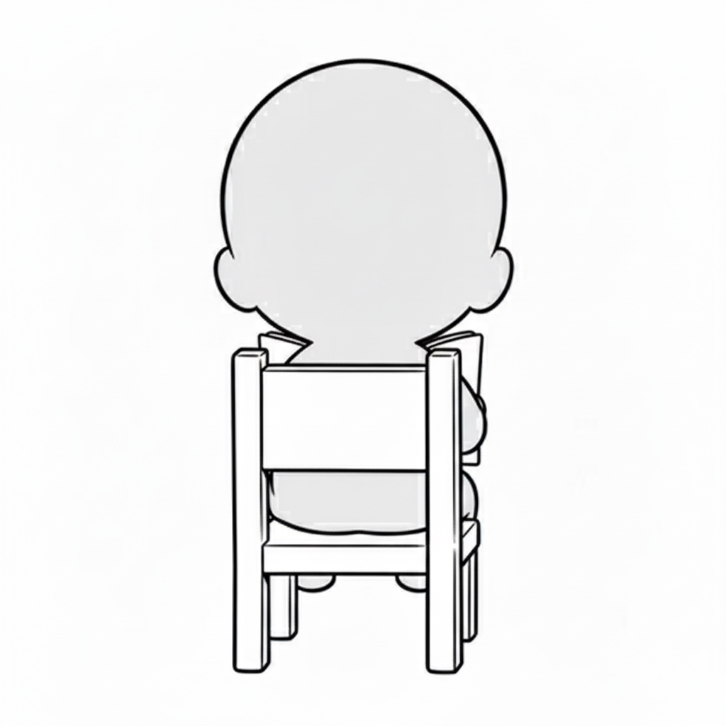 後ろ姿チビキャラ幼児の読書ポーズ|椅子と背中のシルエット