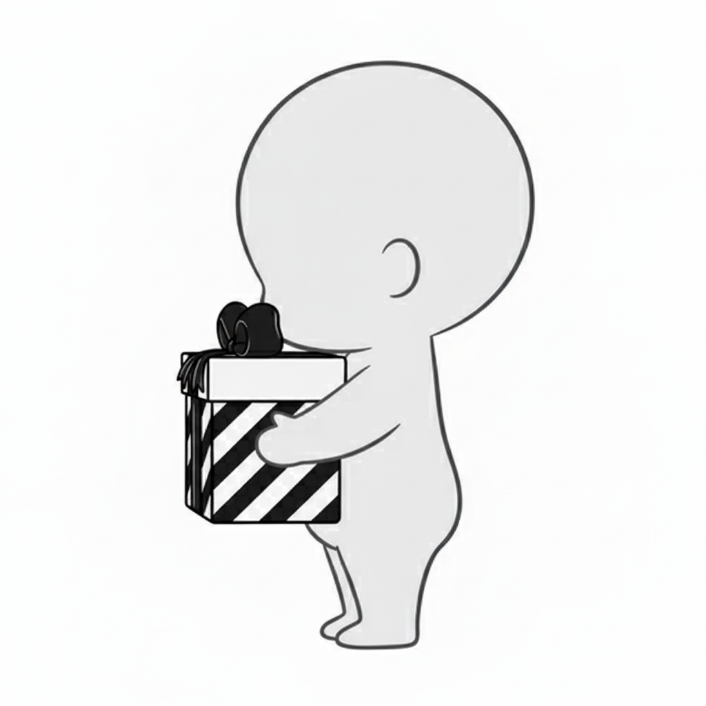 横向きでプレゼントを抱える姿が、贈り物を大切にしている優しい雰囲気を演出します。